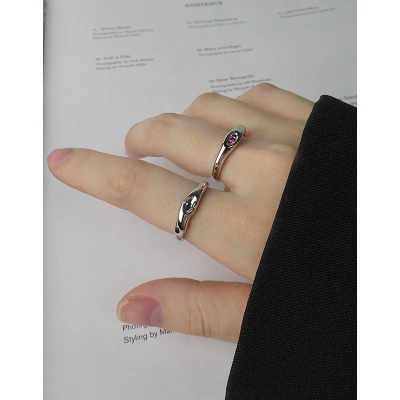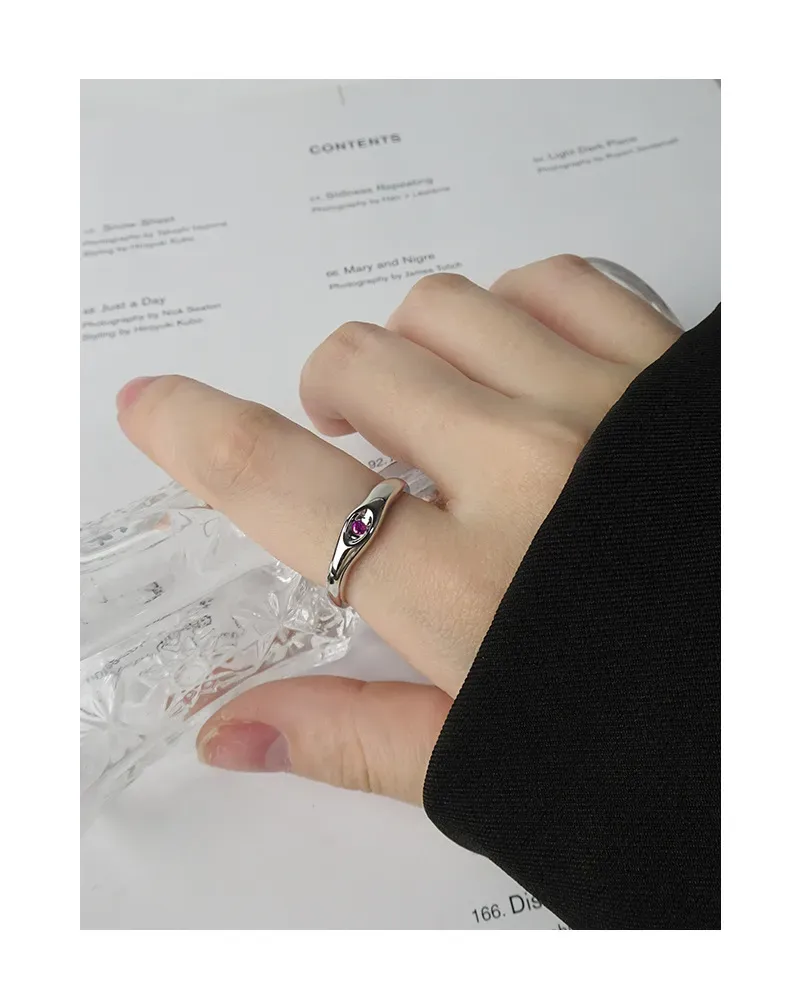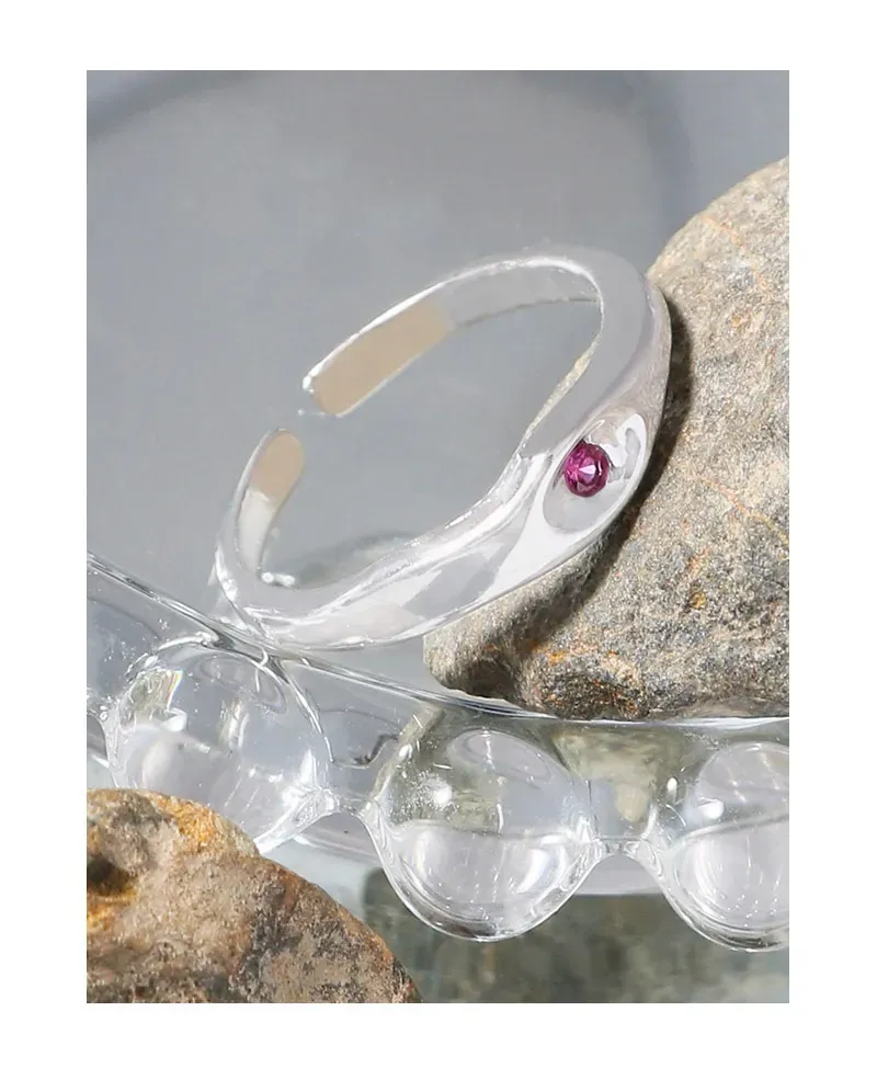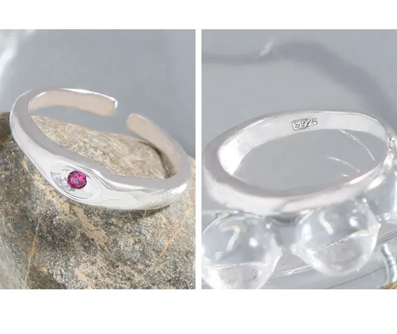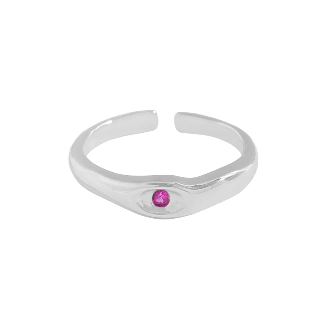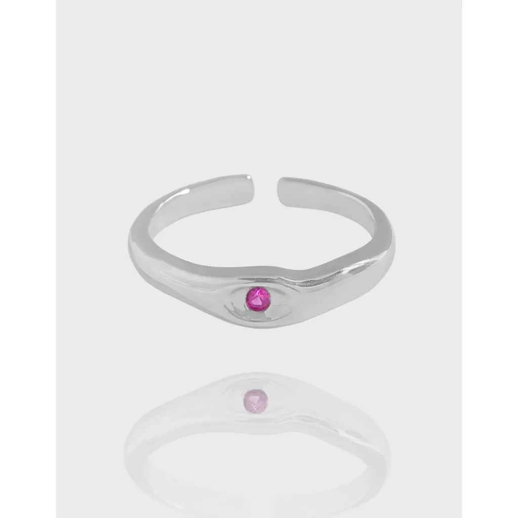 Color: The polished silver band gleams with a radiant finish, perfectly complementing the vibrant magenta hue of the central gemstone.
