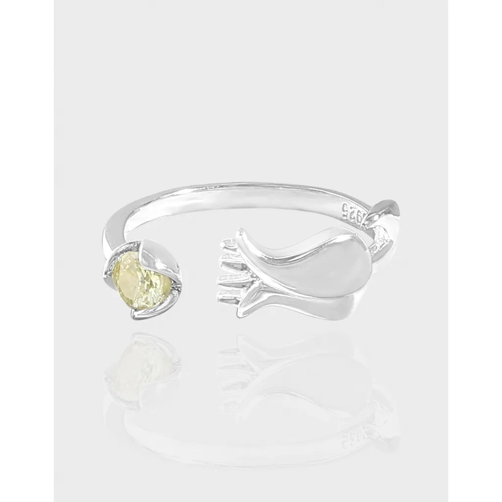 - Color: Crafted from lustrous 925 sterling silver, the band elegantly cradles a captivating light lemon-yellow gemstone, radiating a subtle glow reminiscent of celestial hues at dawn.
