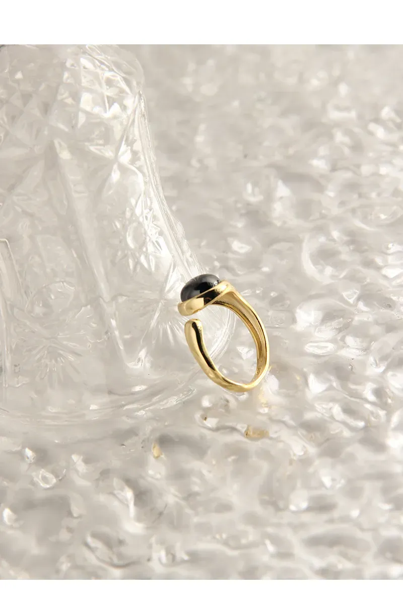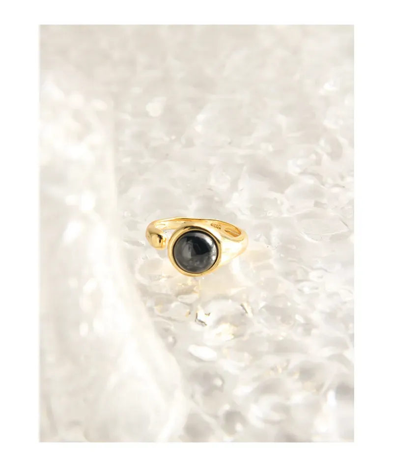 • Color: Available in two enchanting variations, each captuTeralysse Ring the essence of earth and sky. Choose the radiant gold-plated band featuring a deeply polished, obsidian-black gemstone, reminiscent of the mysterious shimmer of the night sky. Alternatively, opt for the lustrous silver-plated band, adorned with a captivating light grey gemstone, displaying a subtle, natural luminescence and internal depth.