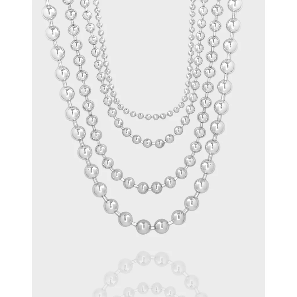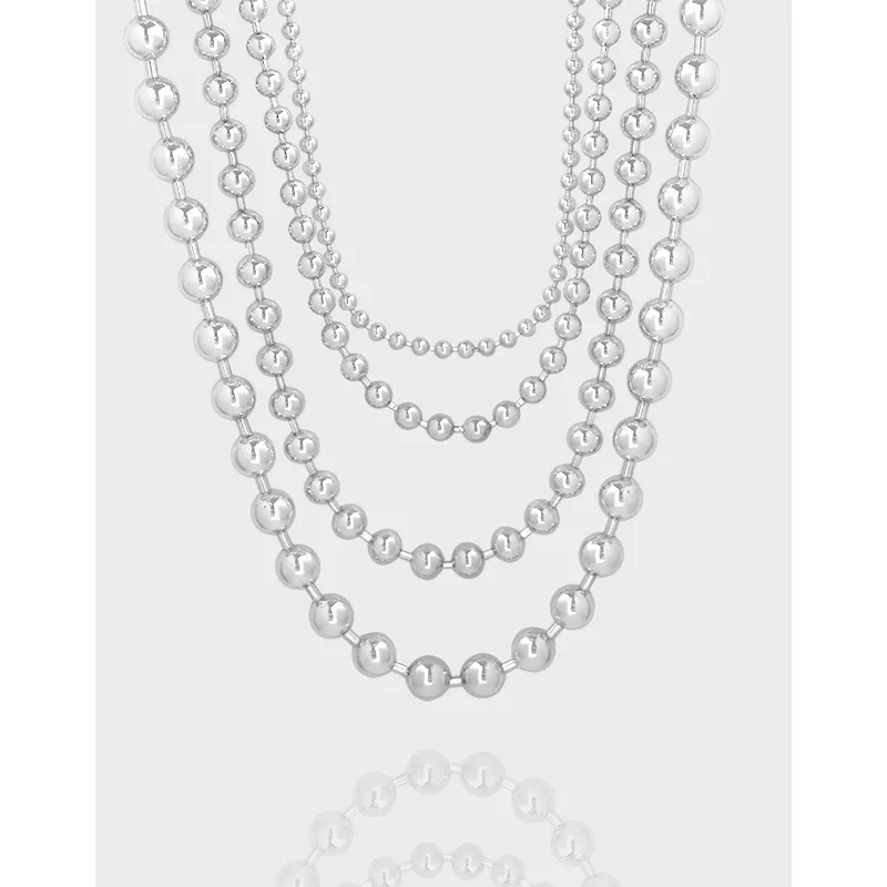 Embrace a timeless allure with this exquisite layered necklace, a homage to the fluid beauty of nature and the magic of light. Its design features multiple strands that gracefully cascade, creating a captivating flow reminiscent of the aurora borealis’s ethereal dance.
