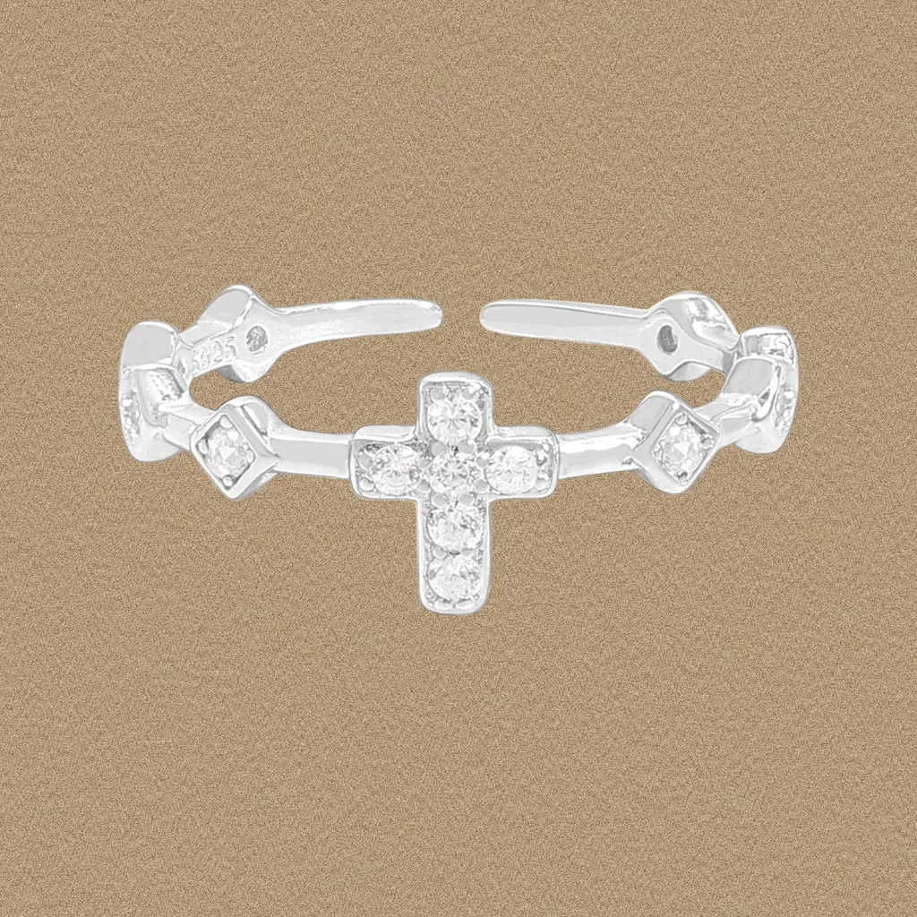 Celestial Sparkle Cross Adjustable Silver Ring