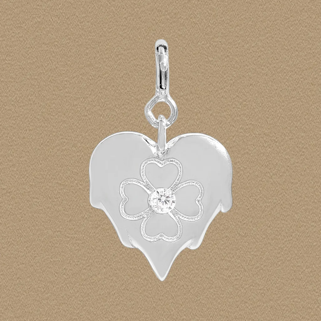 - Patterns & Textures: The central element features a delicate clover pattern, formed by four heart-shaped petals. These petals showcase a refined, subtly textured finish, providing a beautiful contrast to the smooth, highly reflective surface of the underlying leaf form. This interplay of polished and textured surfaces highlights the intricate details, culminating in the brilliant, smooth facet of the central gemstone.