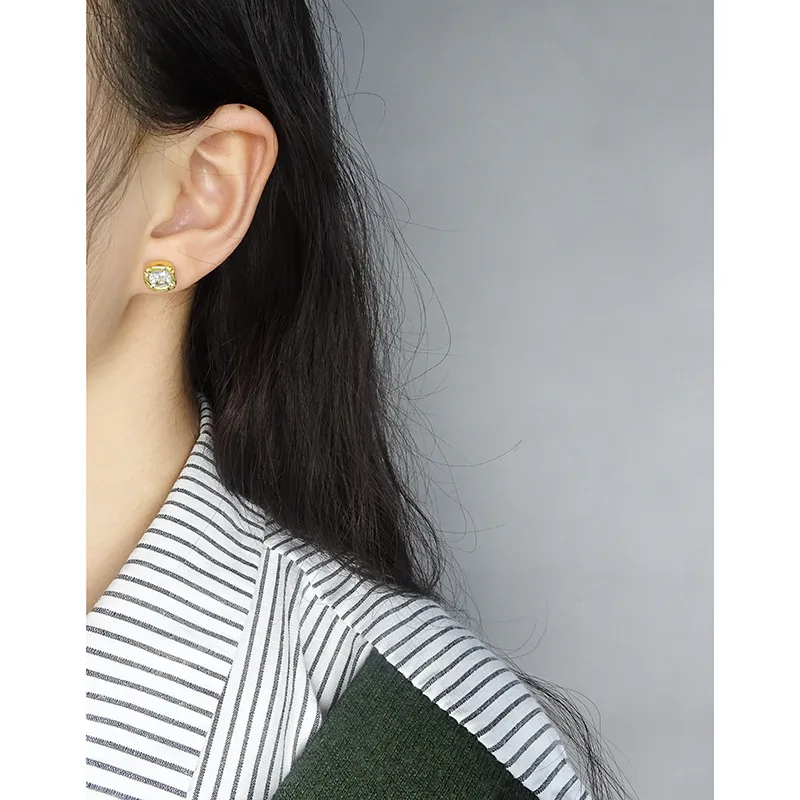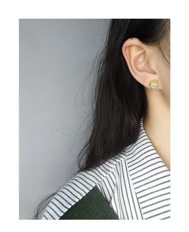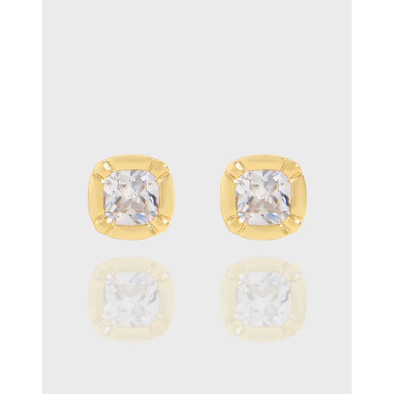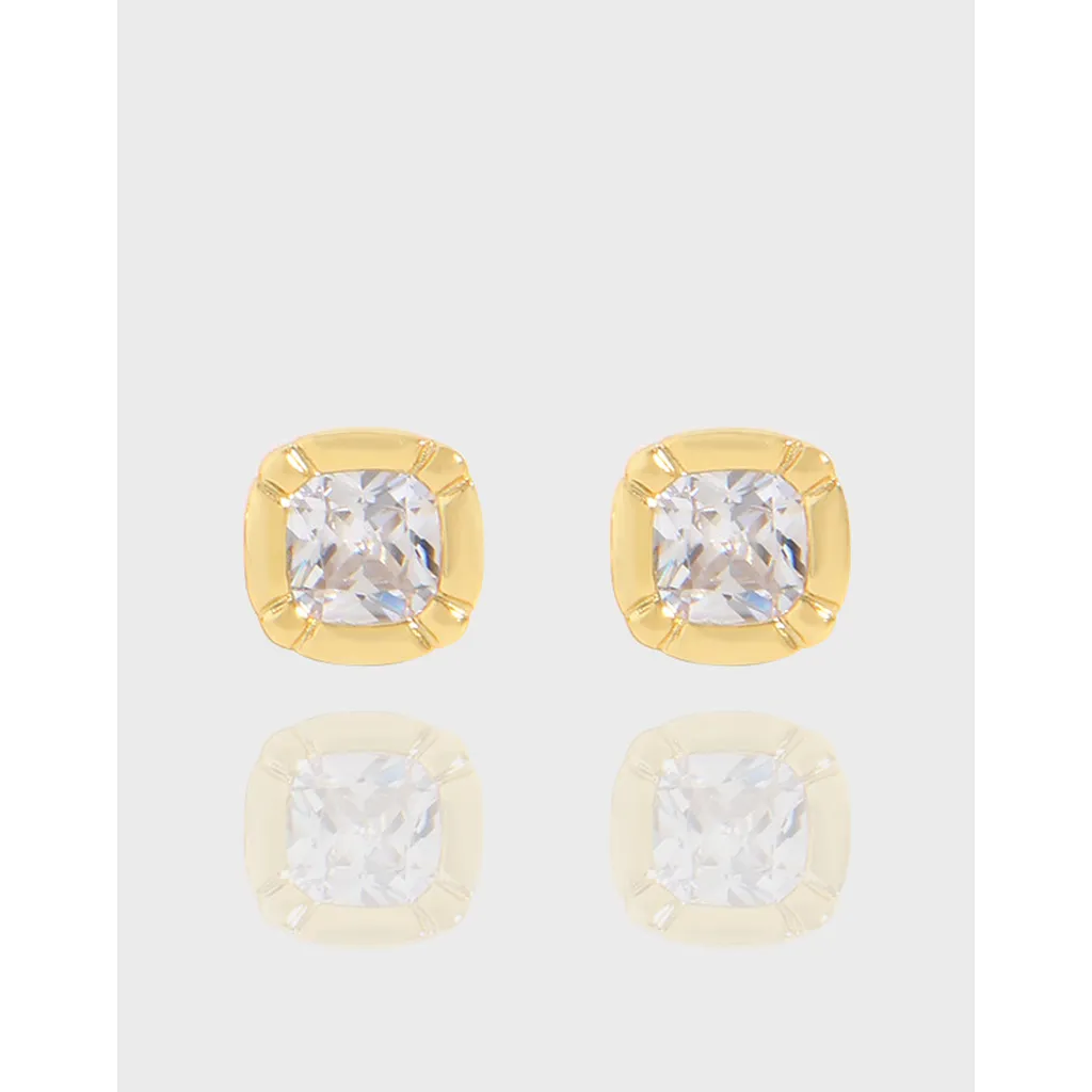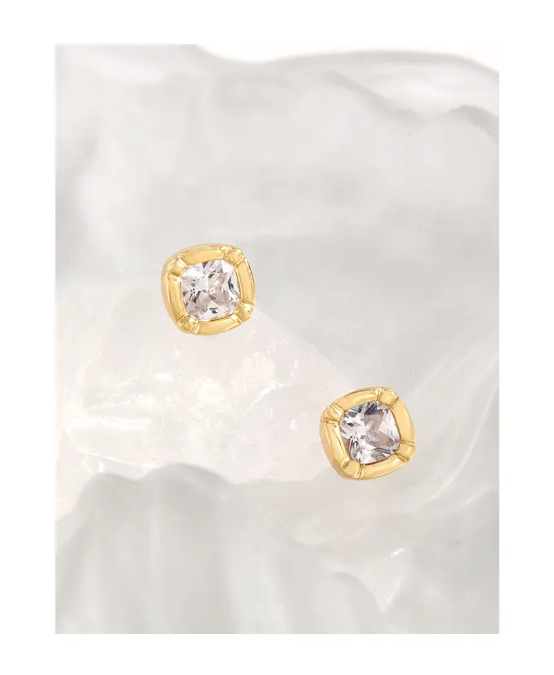 Malisse Celestial Cushion Cut Gold Stud Earrings