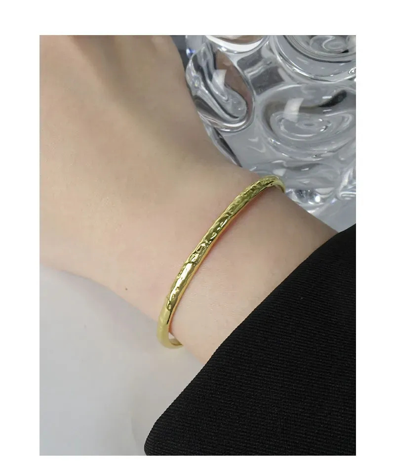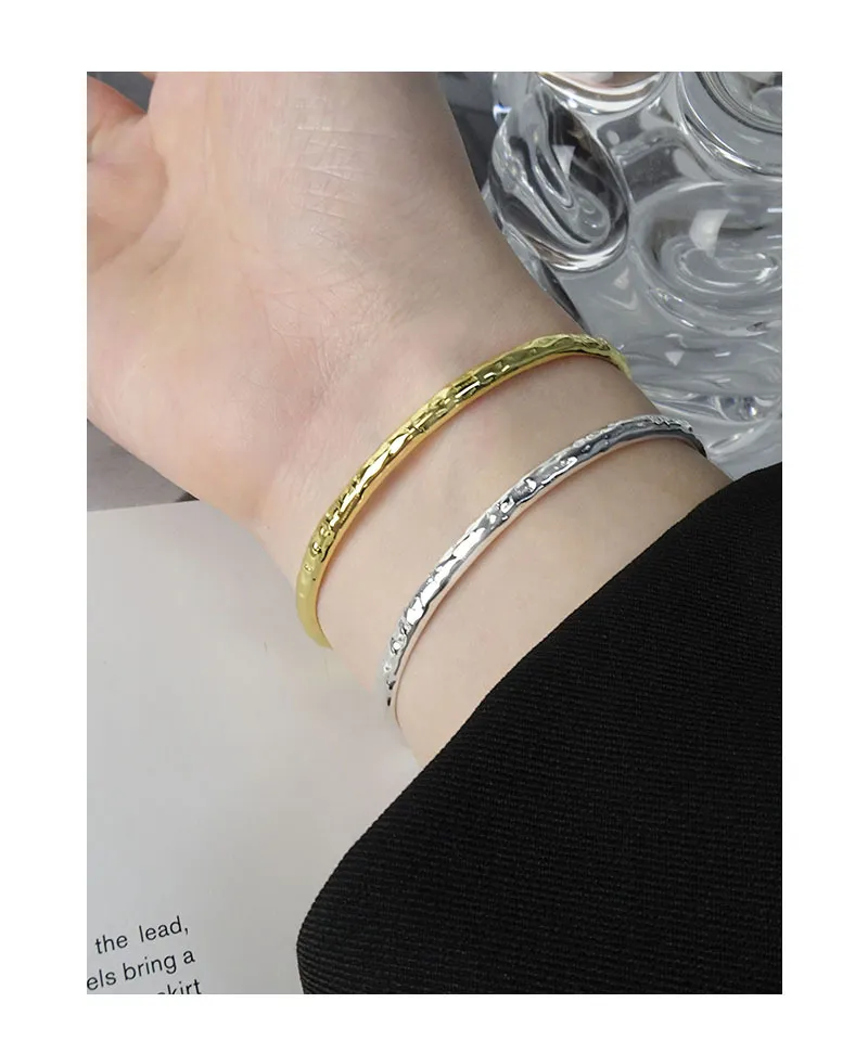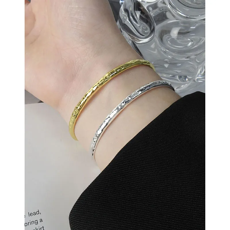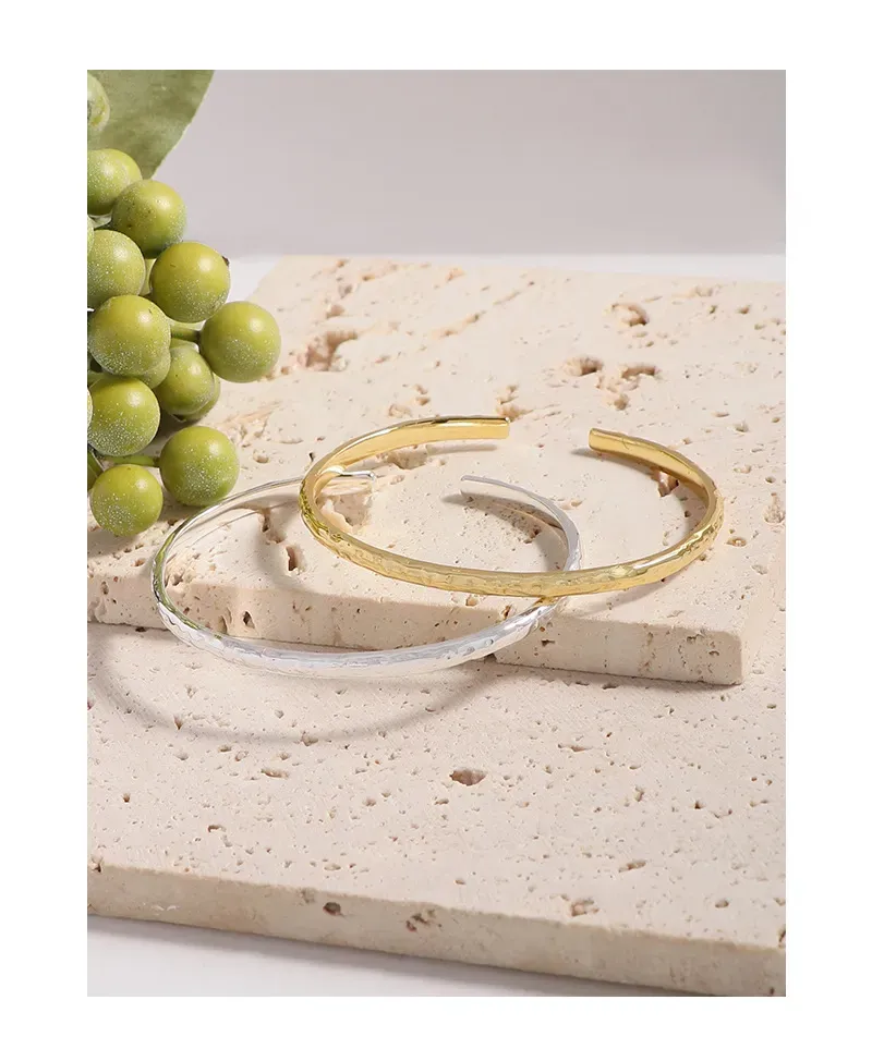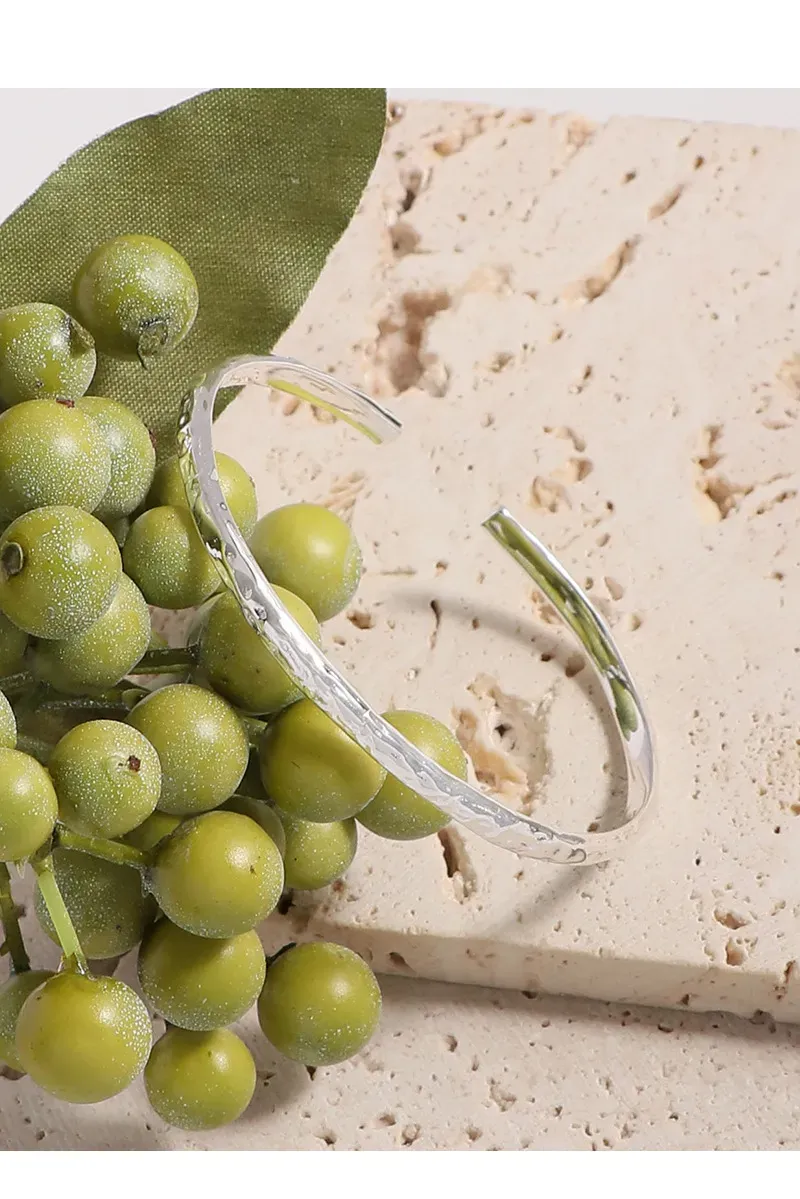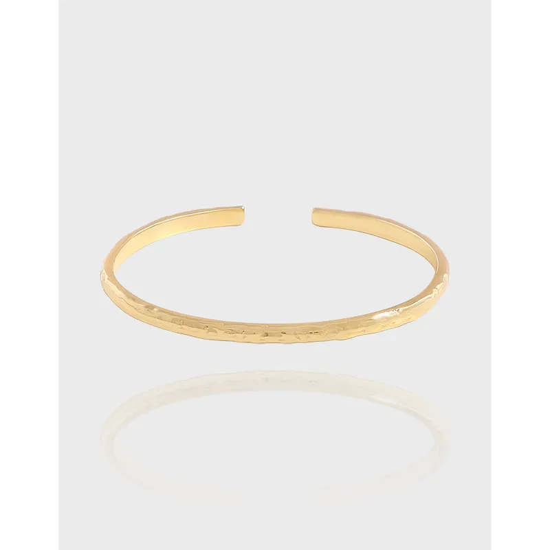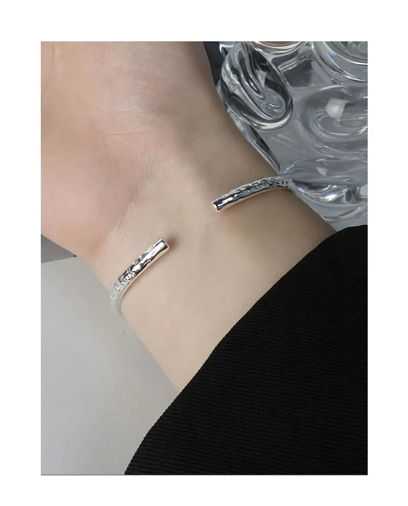 - Style: A sleek, open-cuff design offers both comfort and a modern aesthetic. Its versatile nature allows it to be worn alone or layered, embodying a fluid and organic form.