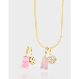 Whimsical Gold Necklace with Gummy Bear & Smiley Charms