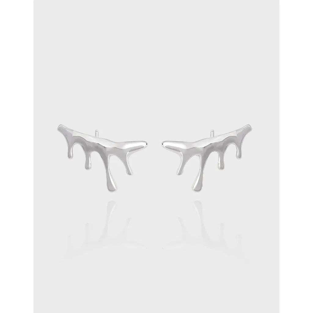 Embrace the captivating allure of Malisse with these unique silver stud earrings. Their striking design features a fluid, organic shape that elegantly mimics the graceful movement of liquid metal, creating a distinctive ‘drip’ or ‘melted’ effect.