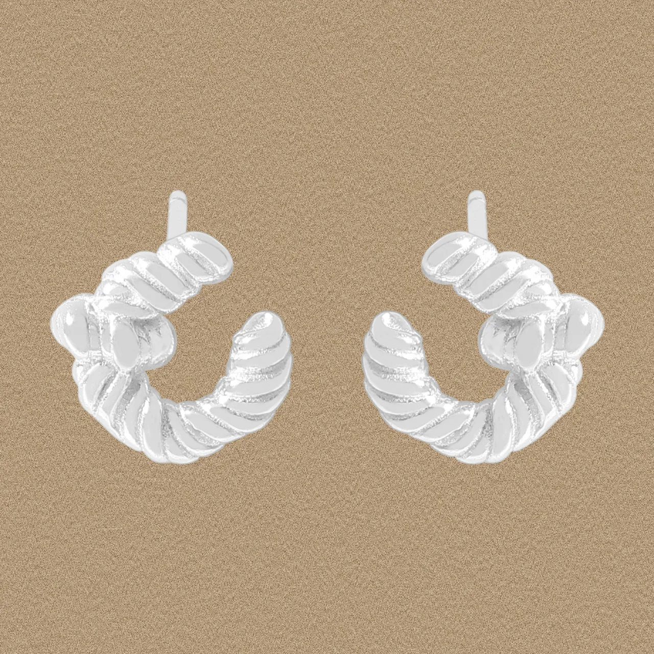 - Style: Designed as bold huggie hoops, they feature a unique twisted silhouette that elegantly frames the ear, embodying fluid and organic forms.