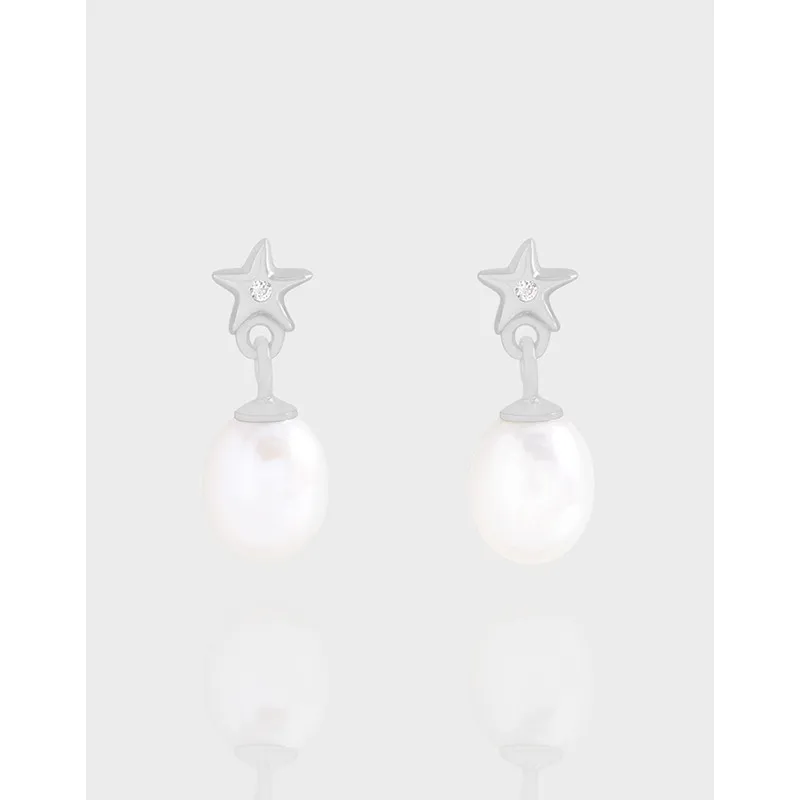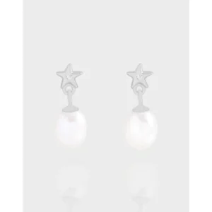 - Style: A captivating blend of celestial wonder and classic sophistication, these drop earrings gracefully dangle. The playful yet elegant star stud, adorned with a brilliant gemstone, connects to a naturally formed pearl, creating a harmonious and fluid design.