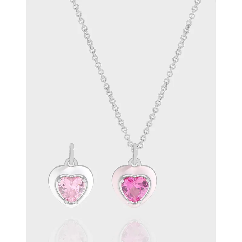 - Color: Adorned with captivating pink gemstones, one a vibrant fuchsia and the other a delicate rose hue. The larger pendant is exquisitely framed by a soft, blush-pink border, beautifully harmonizing with the sterling silver chain and settings.