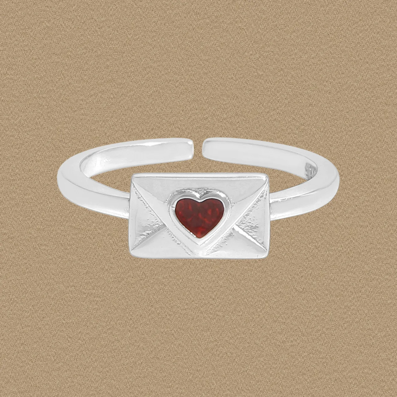 - Style: A romantic and whimsical design, this adjustable ring features a central motif shaped like a sealed envelope, evocative of a cherished love letter or secret message.