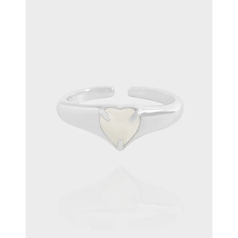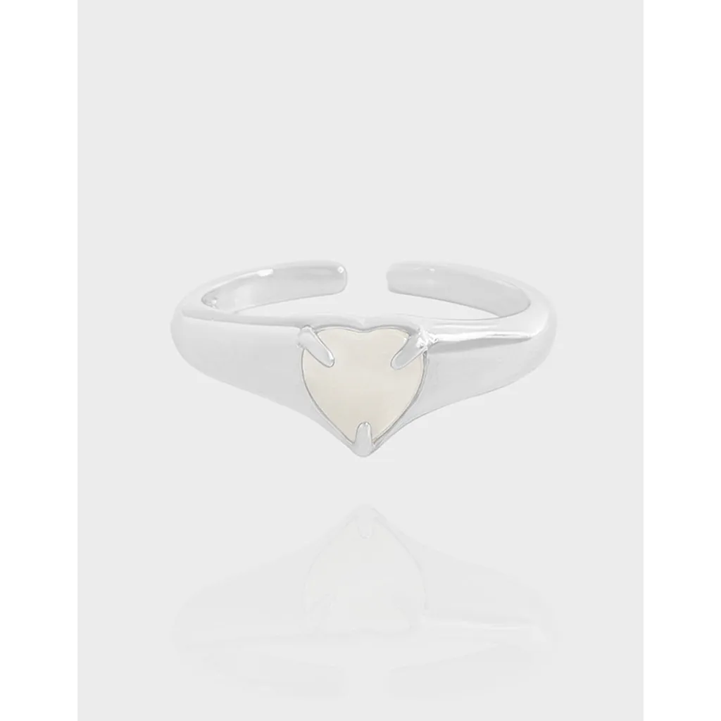 - Color: The ring features a brilliant silver band, beautifully contrasting with the creamy, iridescent off-white heart.