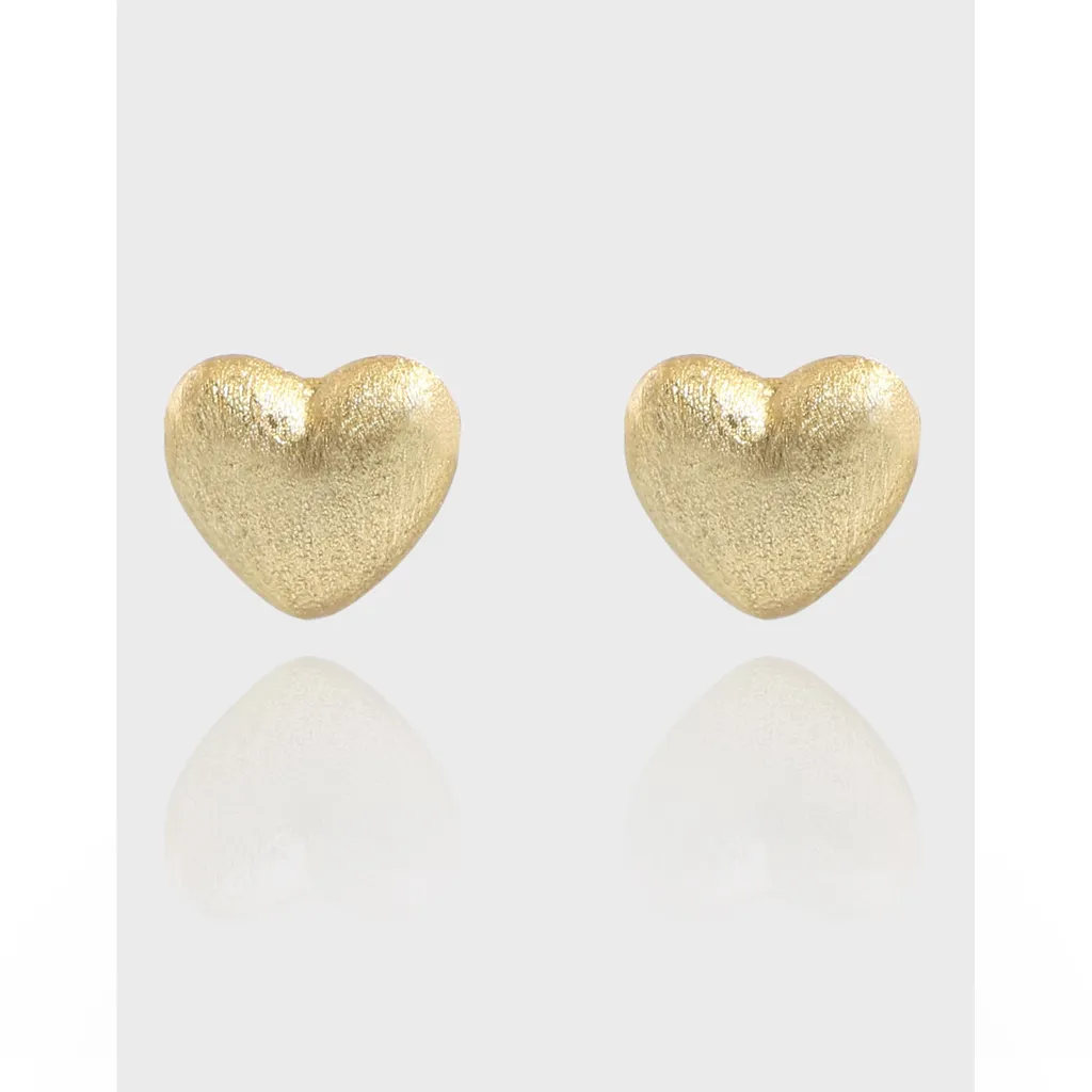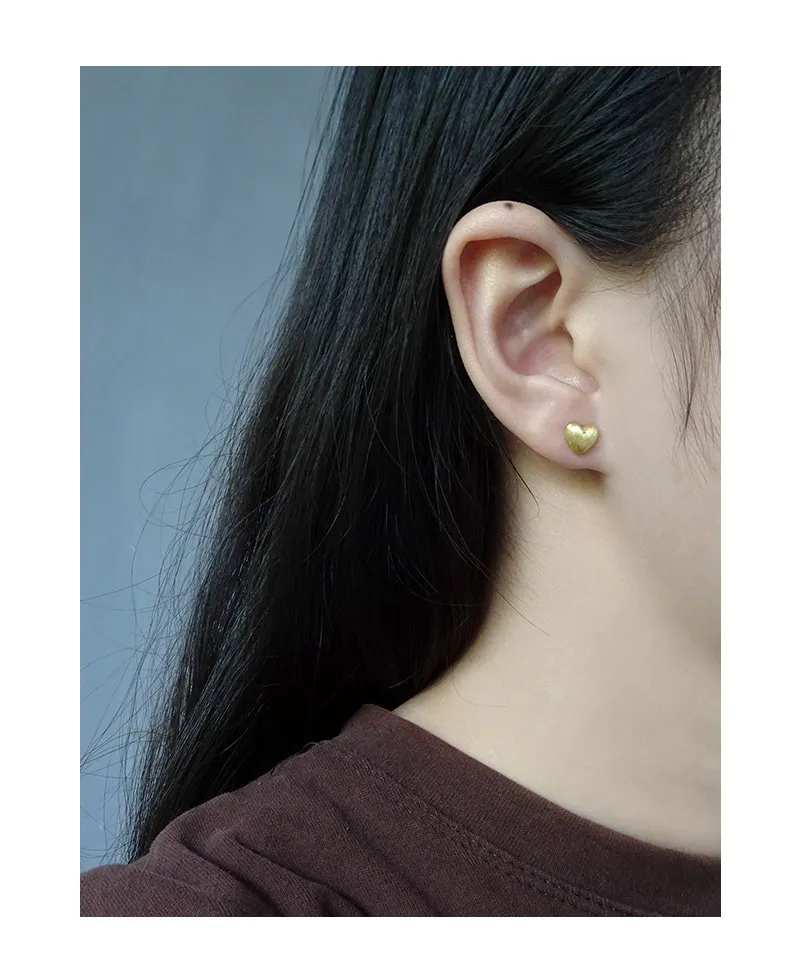 Discover the magic of Malisse with these exquisite heart-shaped stud earrings, designed to capture the enchanting dance of nature and cosmos. Their warm, golden hue radiates a celestial glow, while the fluid shape and raw texture make them an ode to the imperfect beauty found in the world around us.