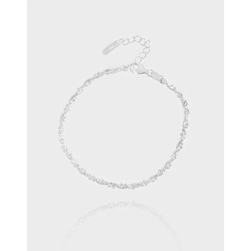 - Patterns & Textures: Features a delicate, intricately twisted chain that artfully catches and reflects light, creating a continuous, shimmering texture akin to the mesmerizing dance of the aurora borealis.