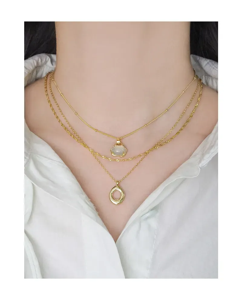 Embrace the enchanting allure of nature with our Malisse Golden Layered Organic Pendant Necklace, a piece that captures the fluid beauty of the natural world.