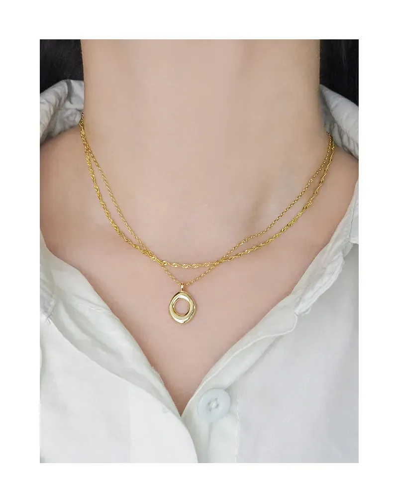• Style: Featuring a delicate layered design, this piece combines two distinct chains for an effortlessly harmonious and organic flow. The upper layer showcases a finely twisted rope chain, while the lower layer presents a classic, elegant chain adorned with an abstract pendant.