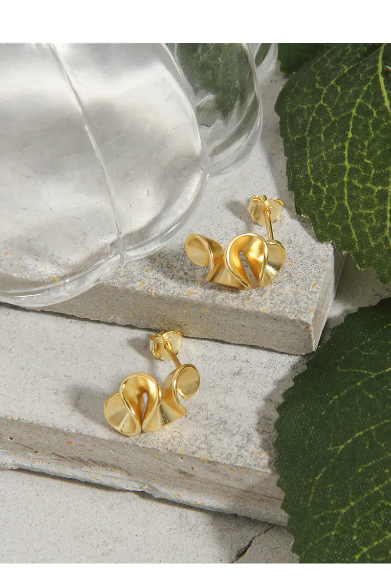 Malisse Celestial Ribbon Gold Stud Earrings