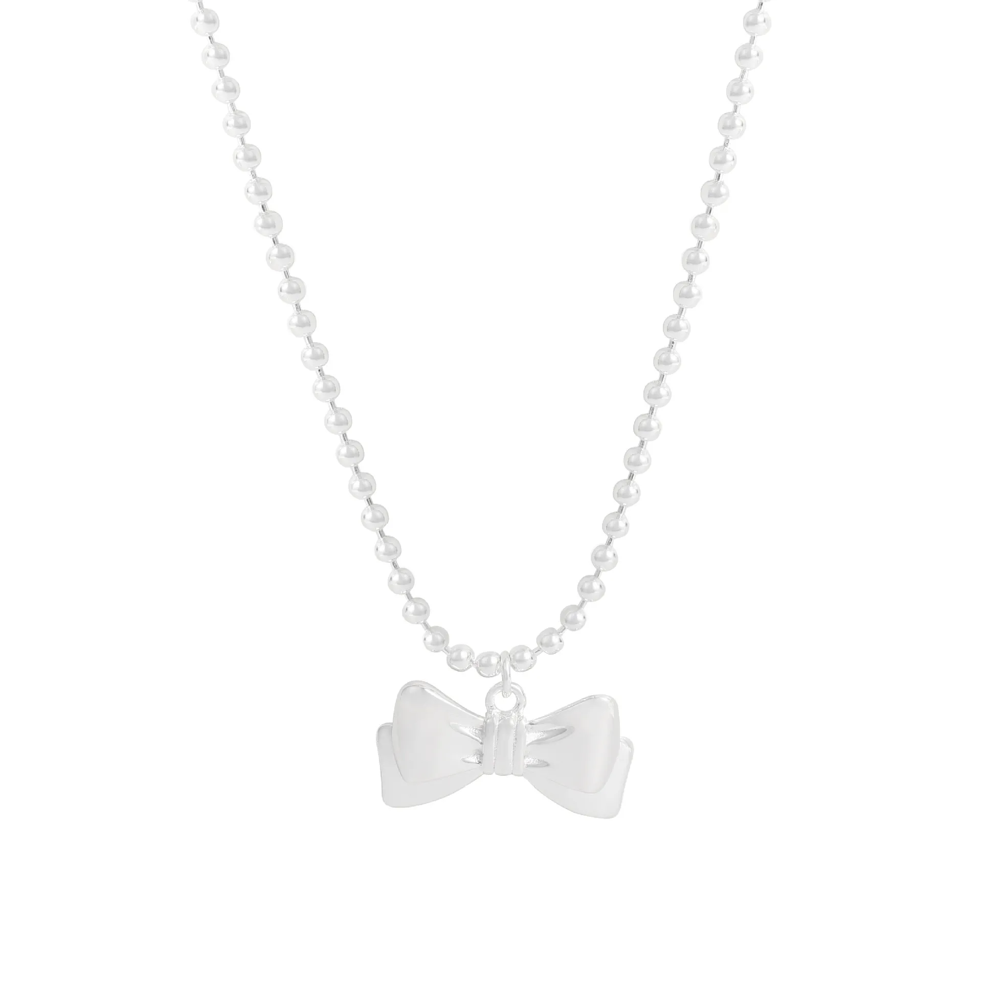- Style: A charming bow-shaped pendant, with its soft, fluid lines, is delicately suspended from a classic beaded chain, offering a blend of playful elegance and sophisticated grace.