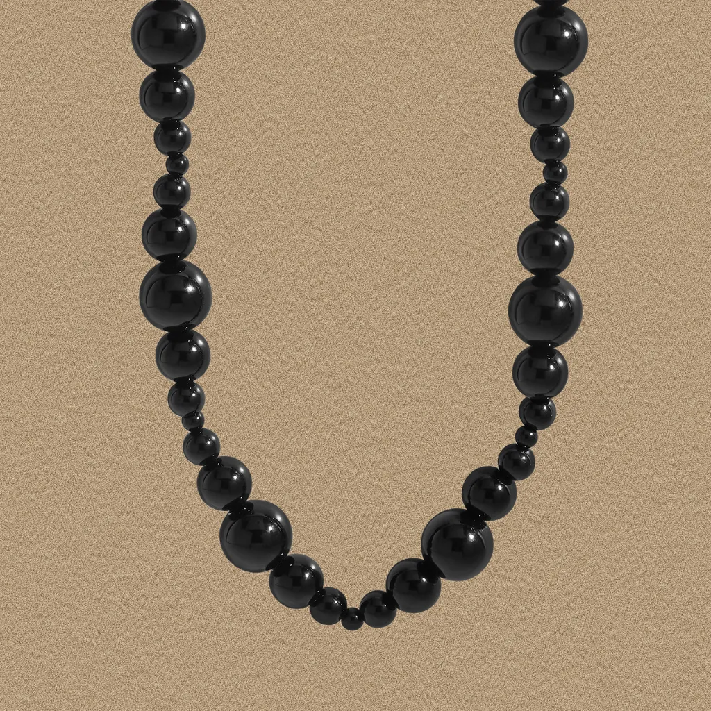 - Style: A single strand features perfectly spherical beads, meticulously arranged in a graduating size pattern. This thoughtful design creates an organic, flowing silhouette that gracefully drapes, echoing the fluid movement of celestial phenomena.