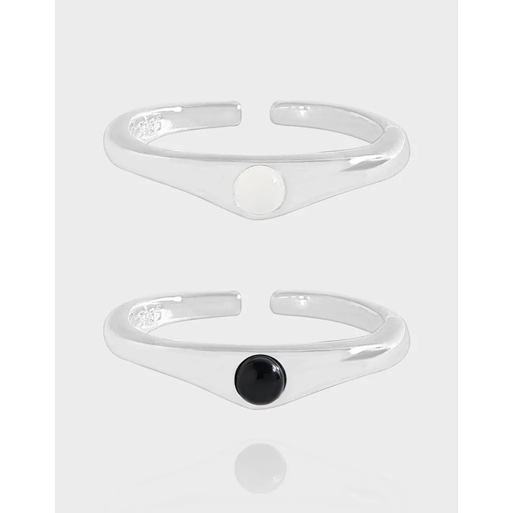 - Color: The Vina Ring features a lustrous silver-toned finish. It is available with a choice of a smooth, opaque white or a deep black circular inlay, providing a striking contrast.