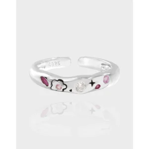 - Color: The polished silver band creates a luminous backdrop for an enchanting array of gemstones, featuVitalia Ring celestial hues of brilliant clear, soft light pink, and deep fuchsia.