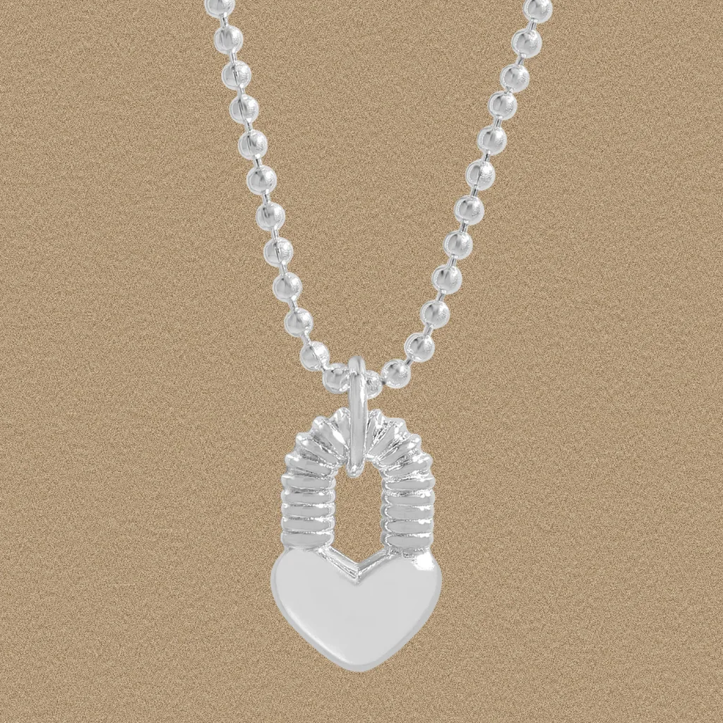 Malisse Silver Ribbed Heart Lock Pendant Necklace