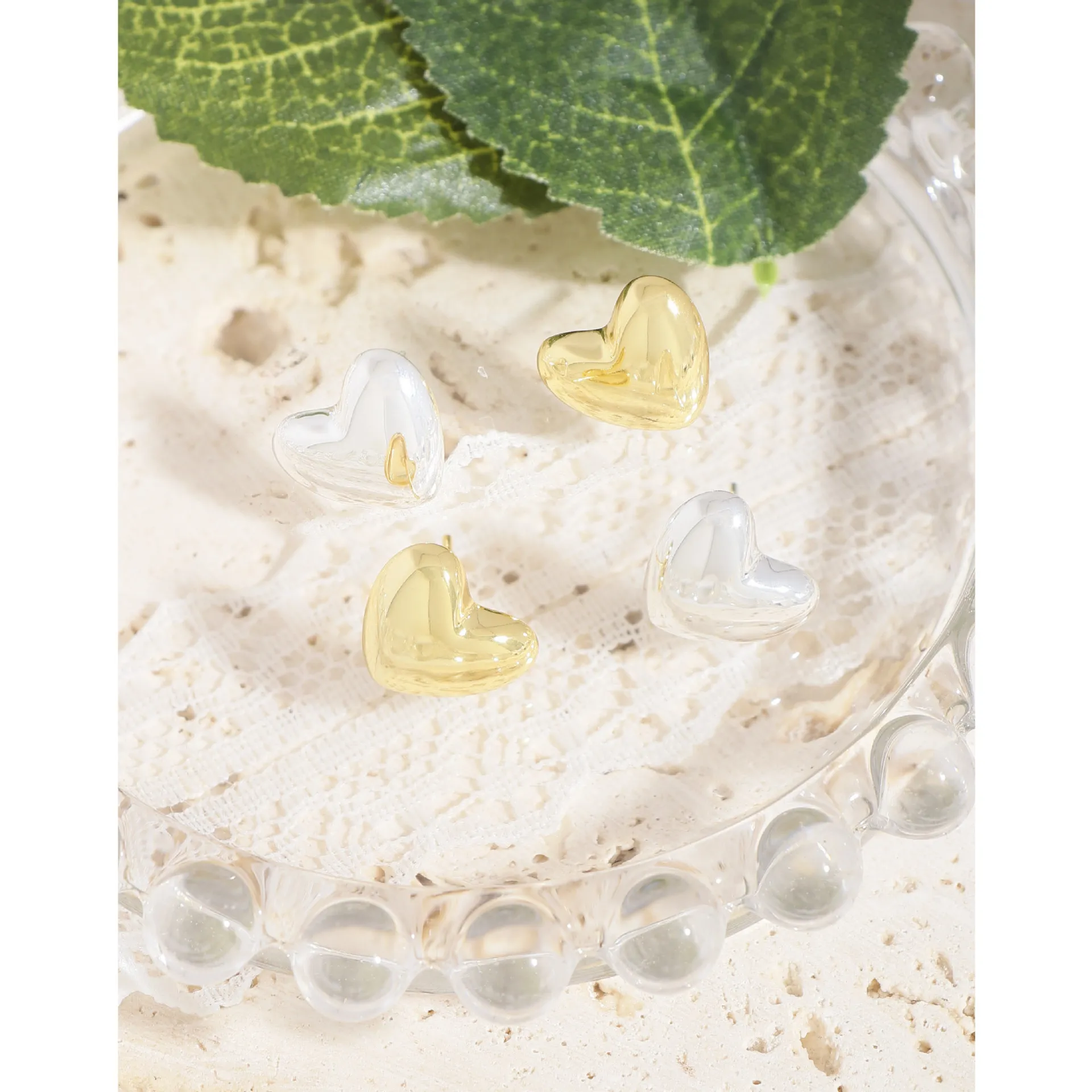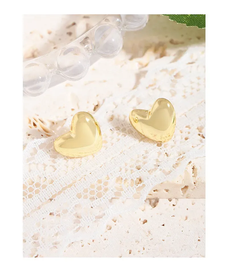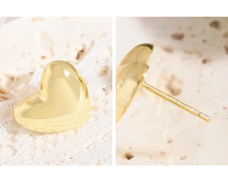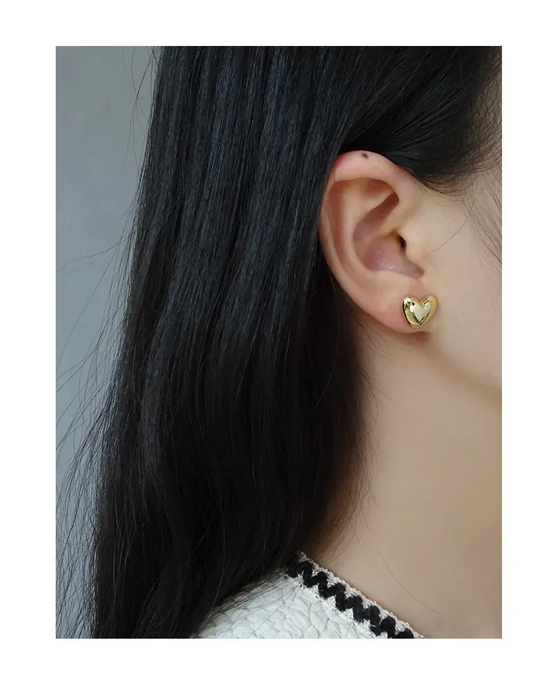 Their timeless heart shape is beautifully rendered with a slightly puffed, three-dimensional profile, offering a classic yet contemporary appeal.