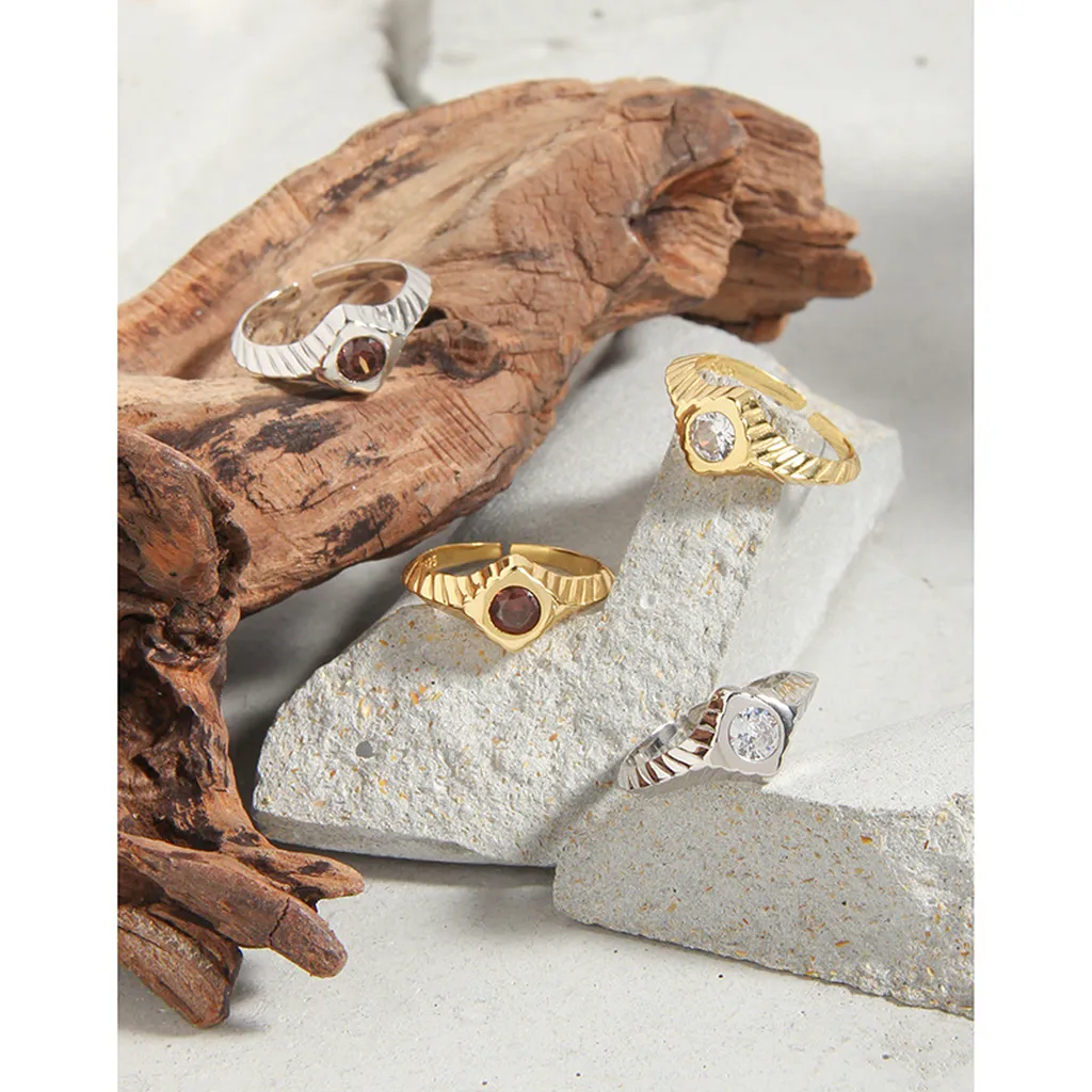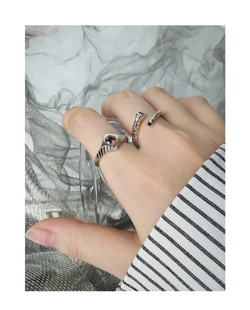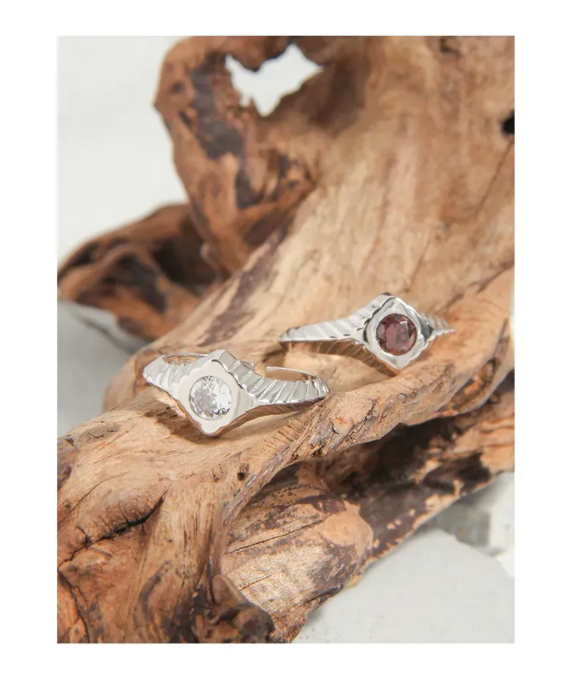 • Style: An adjustable, open-ended band ensures a comfortable and versatile fit, designed to flow with the wearer. The central gemstone is securely set within a raised, smoothed rhombus-shaped bezel, creating a striking focal point for this modern, organically inspired statement piece.