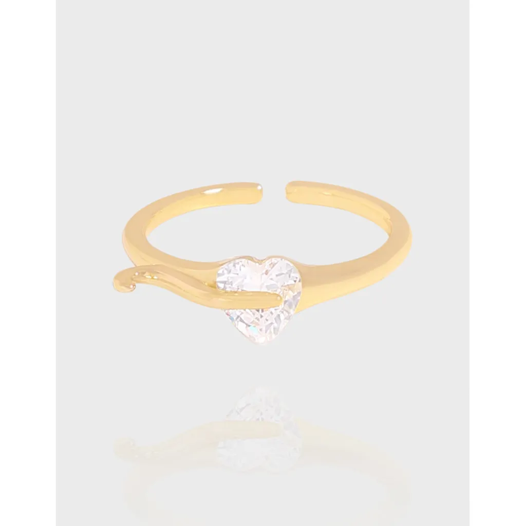 - Color: The ring shines in a radiant gold tone, complemented by a sparkling, clear heart-shaped stone that captures and reflects light beautifully, reminiscent of celestial hues.