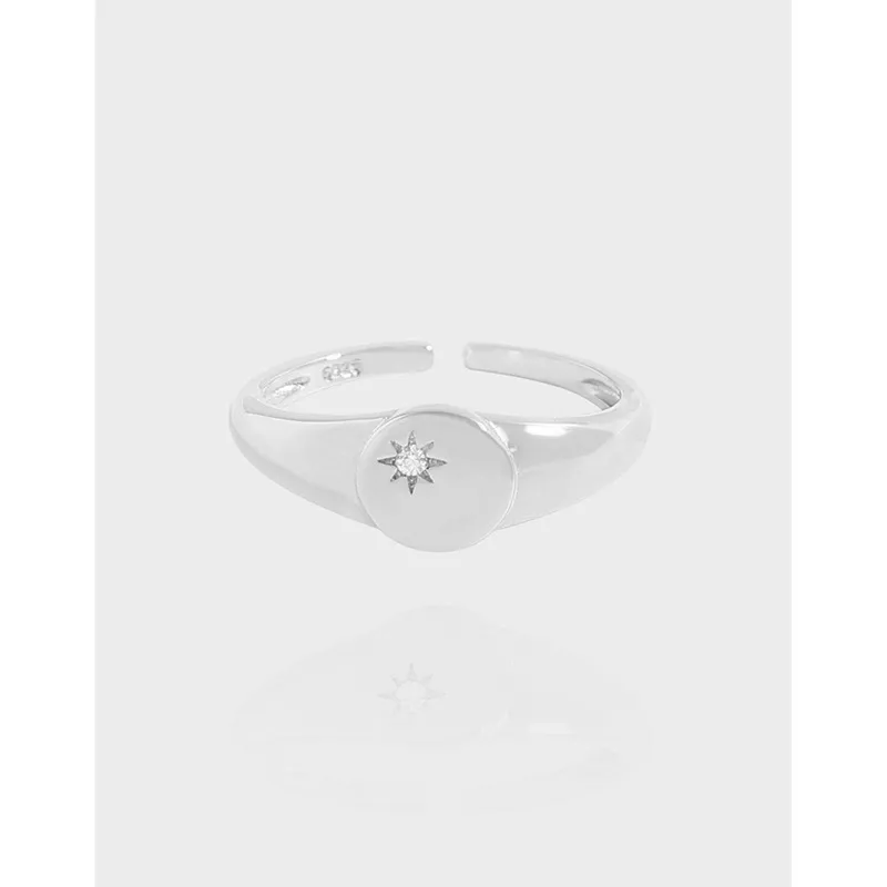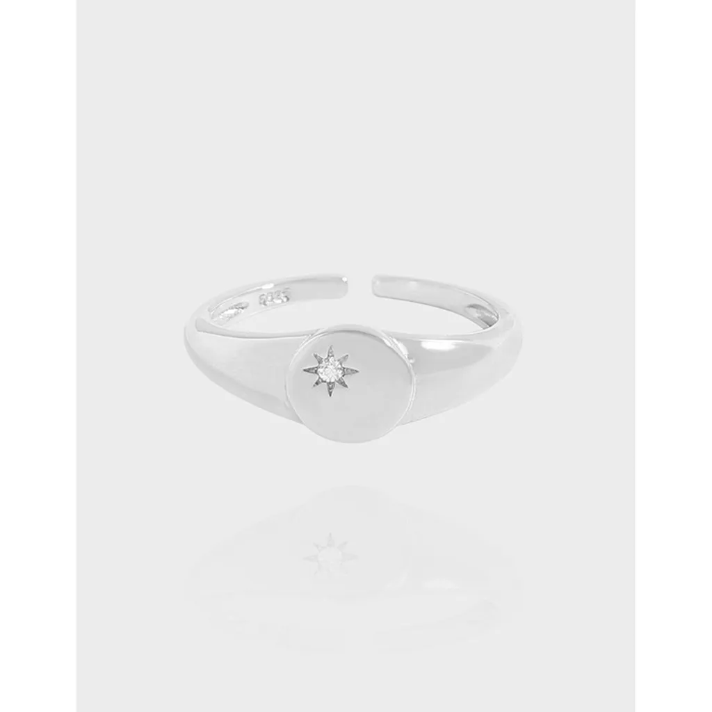 Embrace the magic of the cosmos with this exquisite polished sterling silver adjustable ring. Designed with a timeless signet style, its smooth, reflective surface captures and plays with light, mirroWaelunithra Ring the ethereal glow of the northern lights.