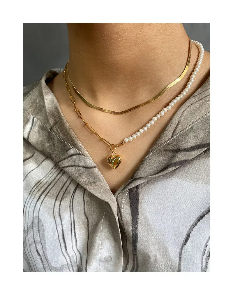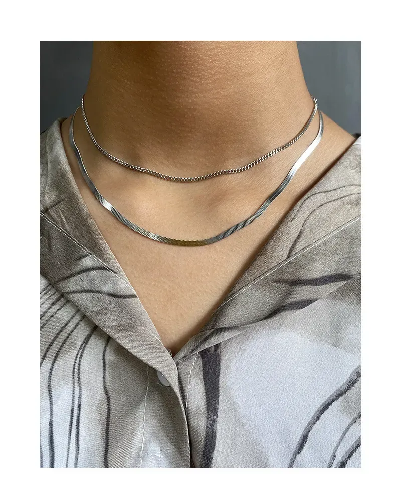 - Style: Designed with modern elegance in mind, this piece features a sophisticated layered style. One chain cascades with a sleek, liquid-like fluidity, while the other offers a delicate, understated contour, creating a dynamic and graceful silhouette.