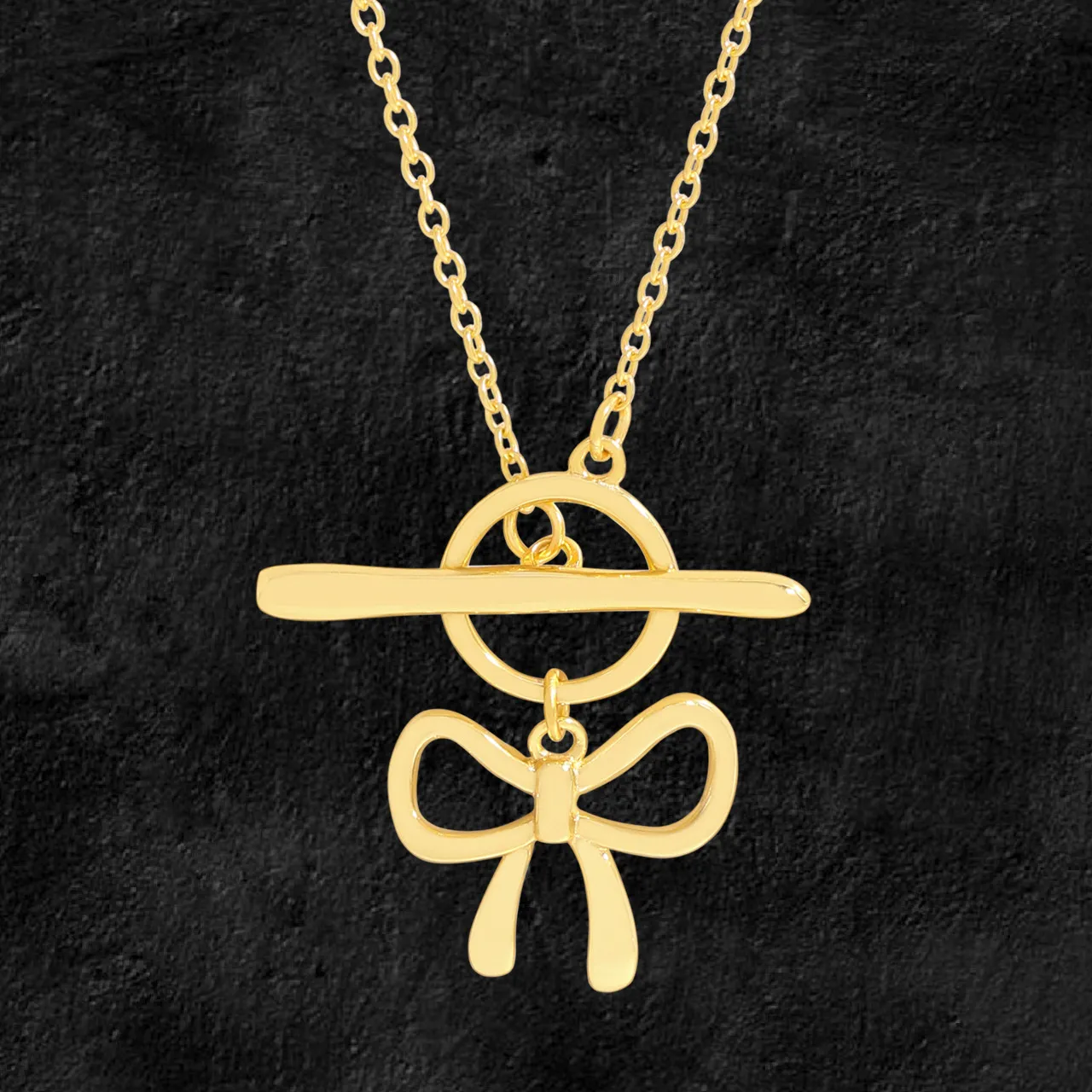 - Style: A harmonious blend of modern elegance and whimsical charm. The Walunara Necklace showcases a unique toggle clasp design, where a sleek, horizontal bar passes through a refined circular ring. Suspended from this elegant clasp is a beautifully sculpted bow pendant, adding a touch of playful sophistication and reflecting Malisse’s dedication to capturing natural beauty.