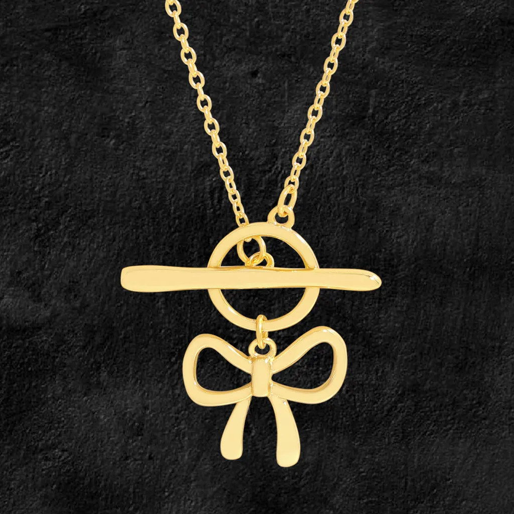 Elegant Gold Toggle & Bow Pendant Necklace