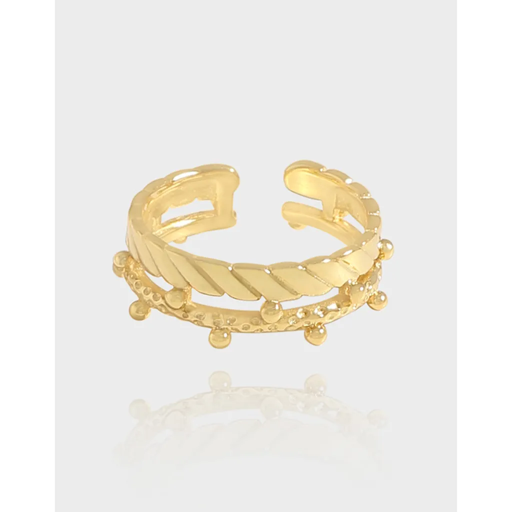 Golden Braided & Beaded Open Ring