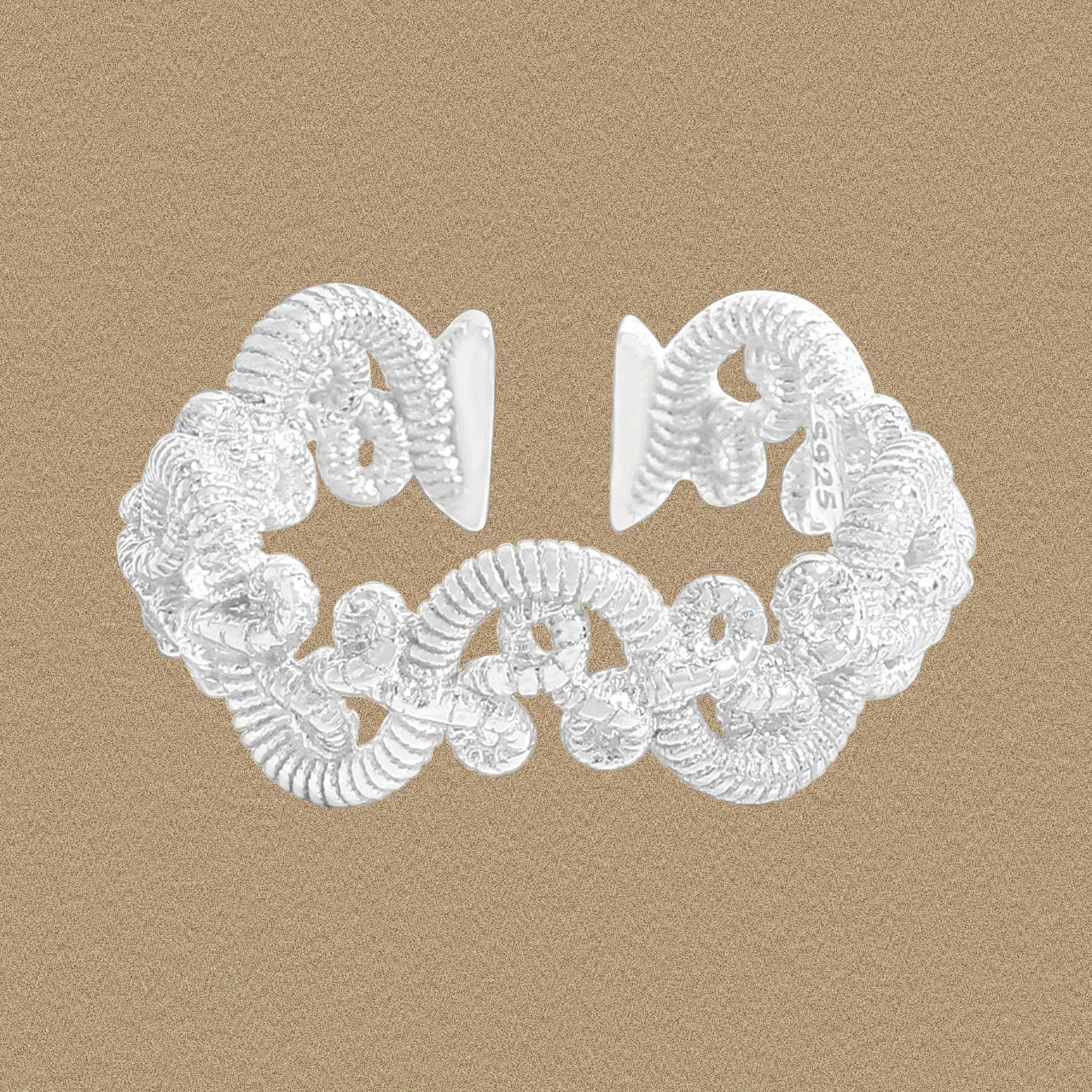 - Style: A fluid and organic open-ended wrap ring, designed with sculptural grace. Its captivating form evokes the imperfect beauty of nature’s patterns and the mystery of natural elements, fitting seamlessly into any ensemble.