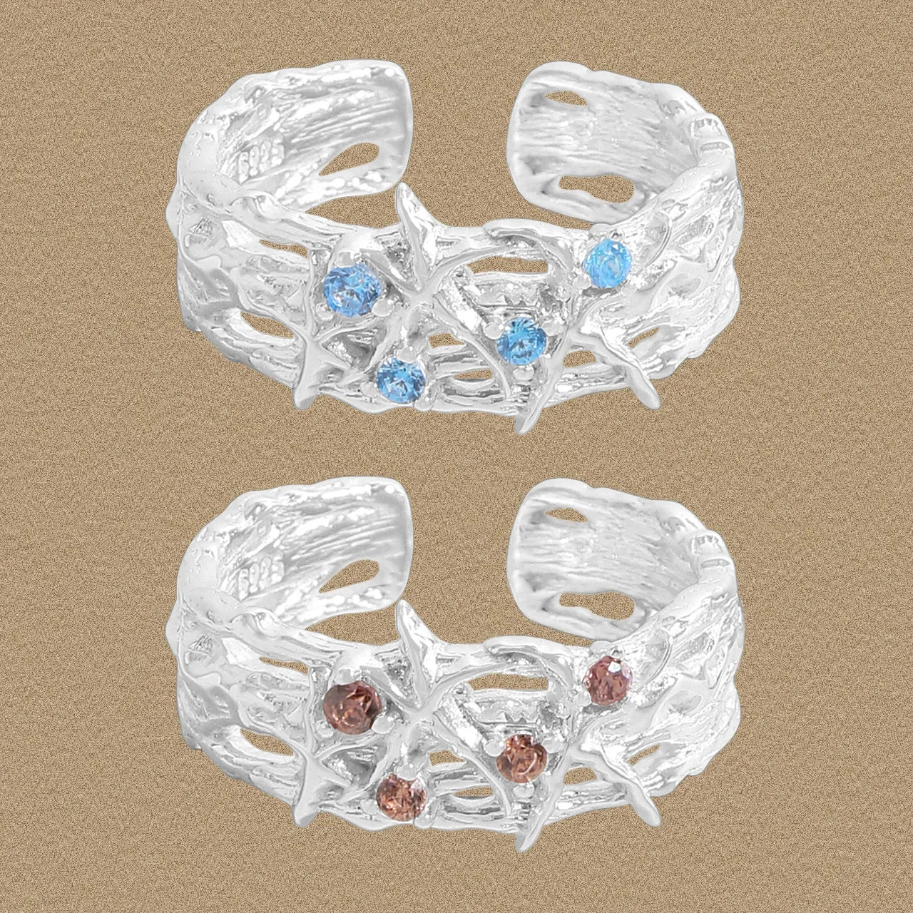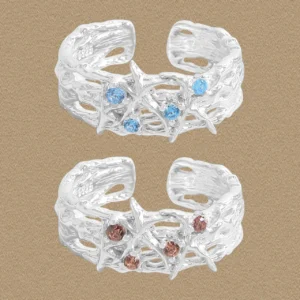 Discover the enchanting “Whispering Grove” adjustable Wylindria Ring, a Malisse creation that beautifully embodies nature’s artistry. Crafted from lustrous silver-toned metal, this piece offers two captivating gemstone options: brilliant light blue stones, mirroring celestial hues, or warm, earthy reddish-brown stones, reflecting the rich palette of natural landscapes.