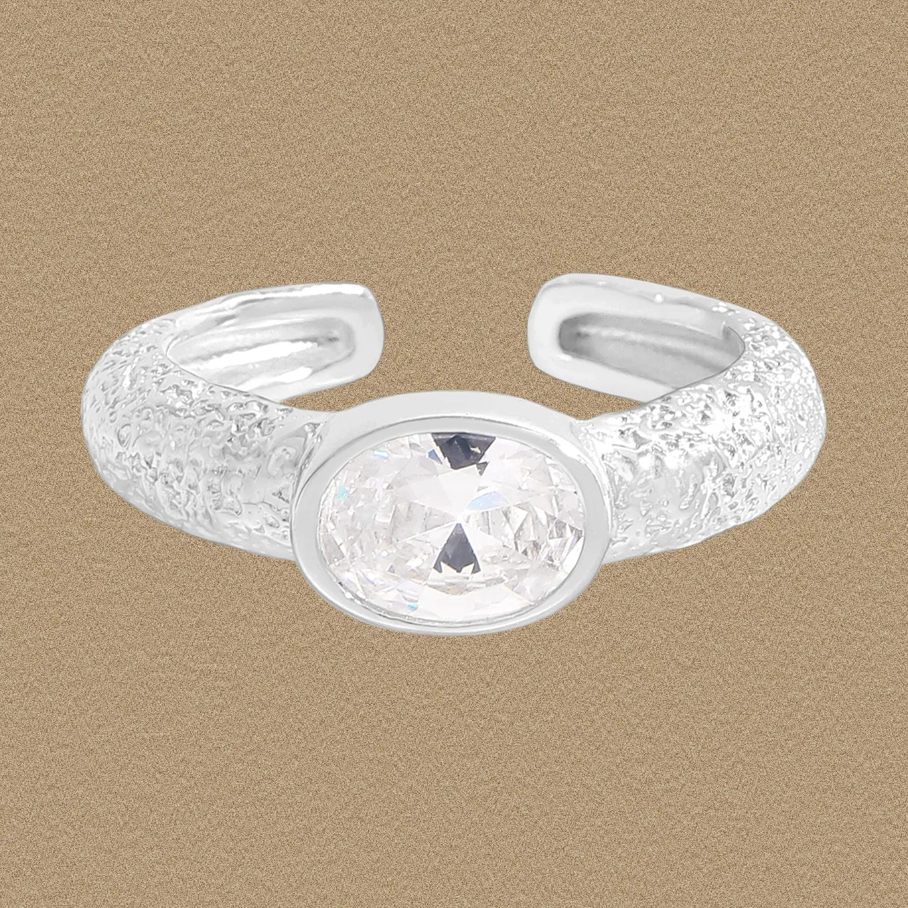 • Style: An elegant open-band design allows for comfortable wear and a modern silhouette. The central oval stone adds a timeless touch, making it versatile for both everyday elegance and special occasions.