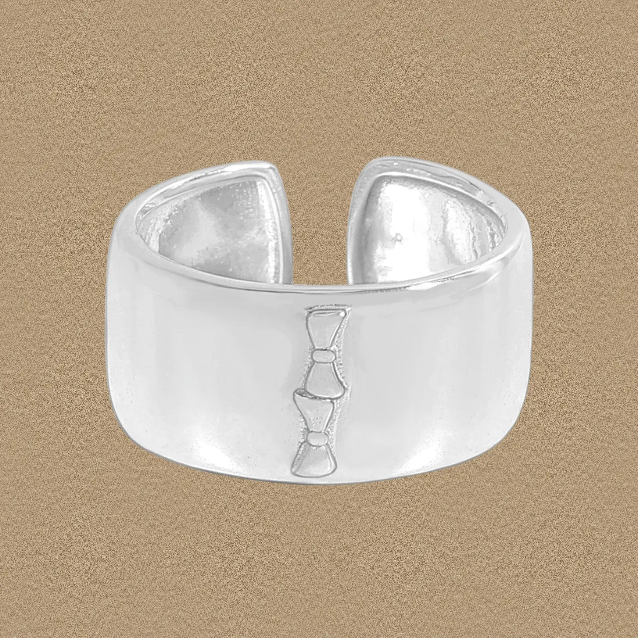 Embrace the enchanting allure of nature with the Malisse Sterling Silver Ribbon Band Ring. Inspired by the fluid dance of light and the organic beauty of the earth, this adjustable piece captures a timeless elegance, echoing the mystical glow of the northern lights.