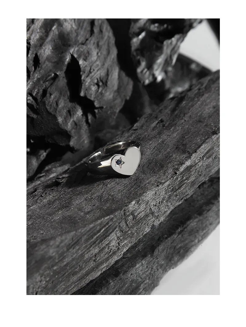 • Style: An open-end, adjustable band provides a comfortable fit, leading to a prominent heart-shaped signet face. The overall design offers a blend of modern minimalism and celestial charm.