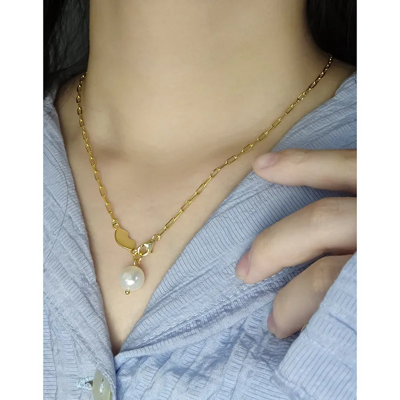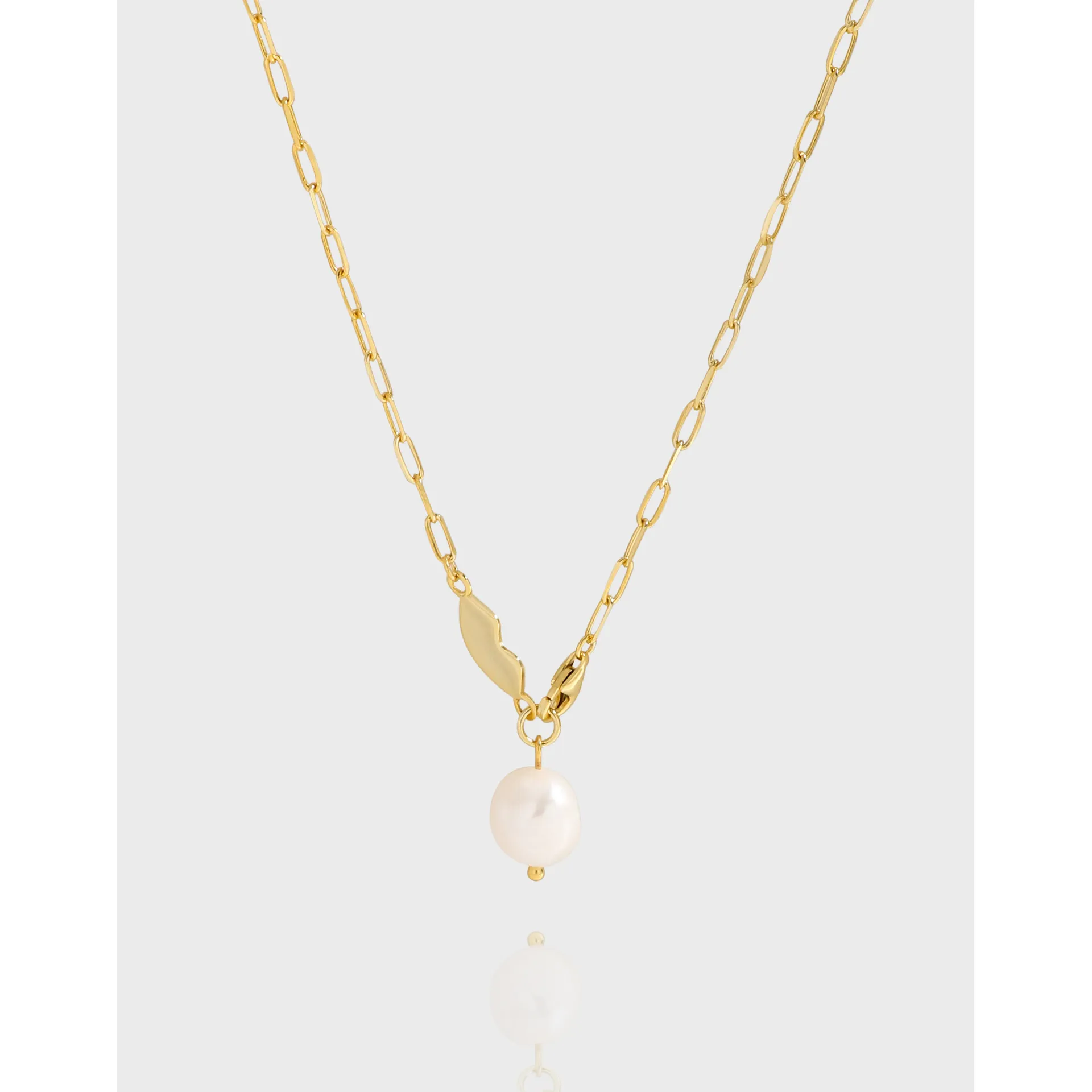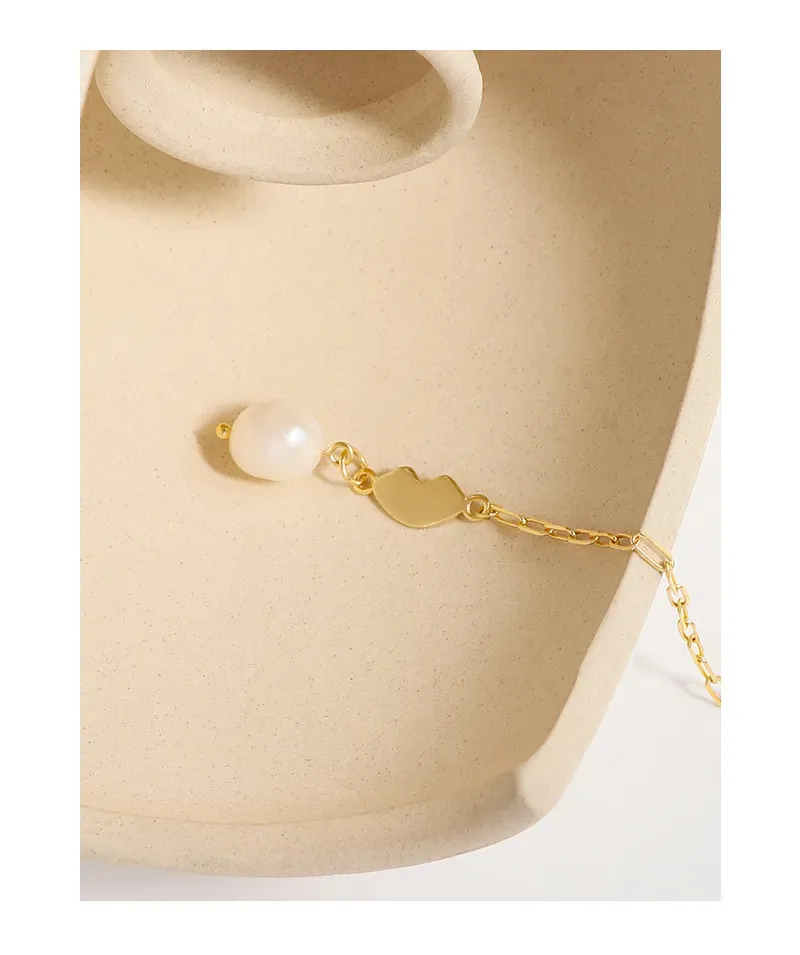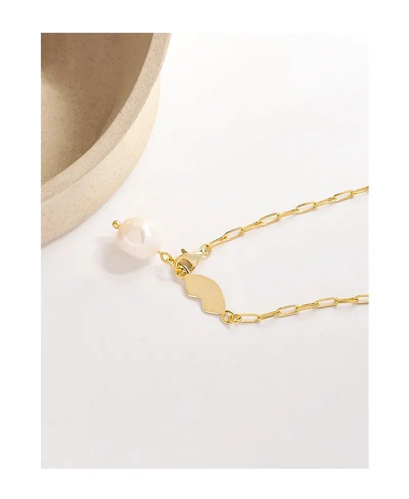 - Patterns & Textures: The elongated links of the chain feature a smooth, polished texture, reflecting light with every movement. The organic gold element boasts a similarly sleek, reflective surface, while the baroque pearl exhibits its natural, subtly irregular, and luminous texture, celebrating the imperfect beauty of nature’s artistry.