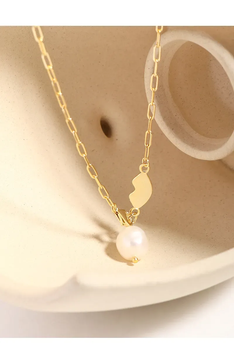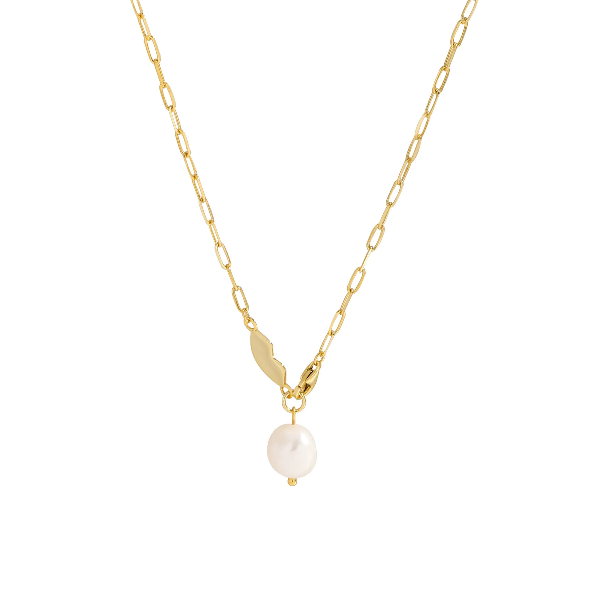 - Style: A delicate paperclip chain forms the foundation of this piece, leading to a uniquely sculpted, fluid gold connector. Adorning the connector is an organic, baroque pearl, creating a harmonious blend of refined elegance and natural charm, reminiscent of the cosmos’ raw beauty.