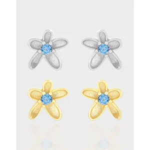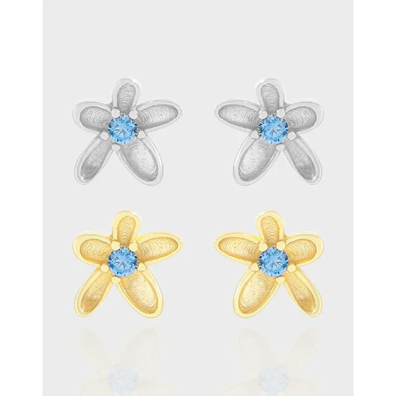Celestial Blossom Studs: Gold & Silver with Blue Gem