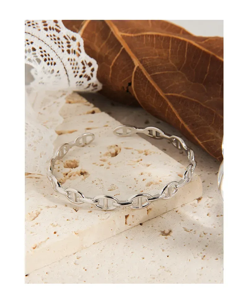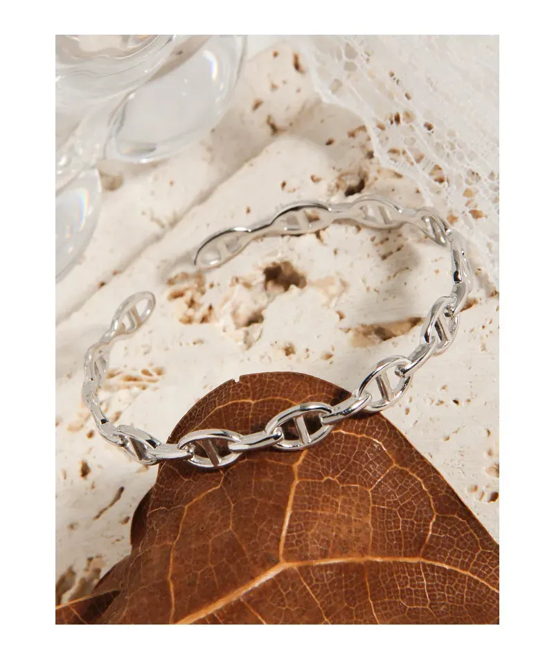Celestial Silver Chain Link Cuff Bracelet