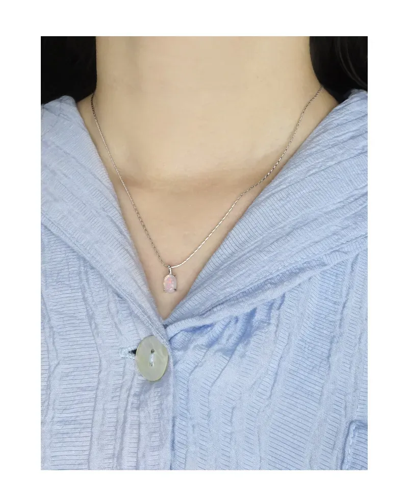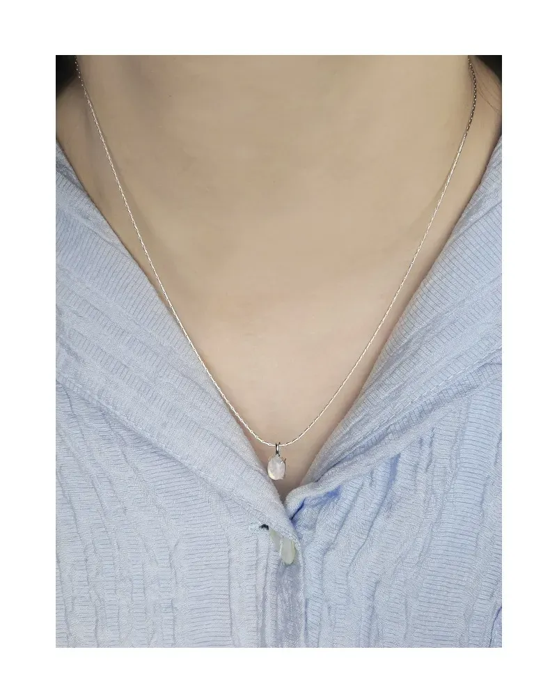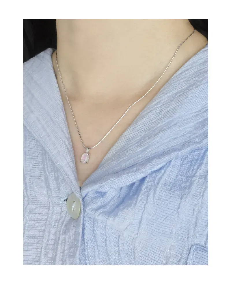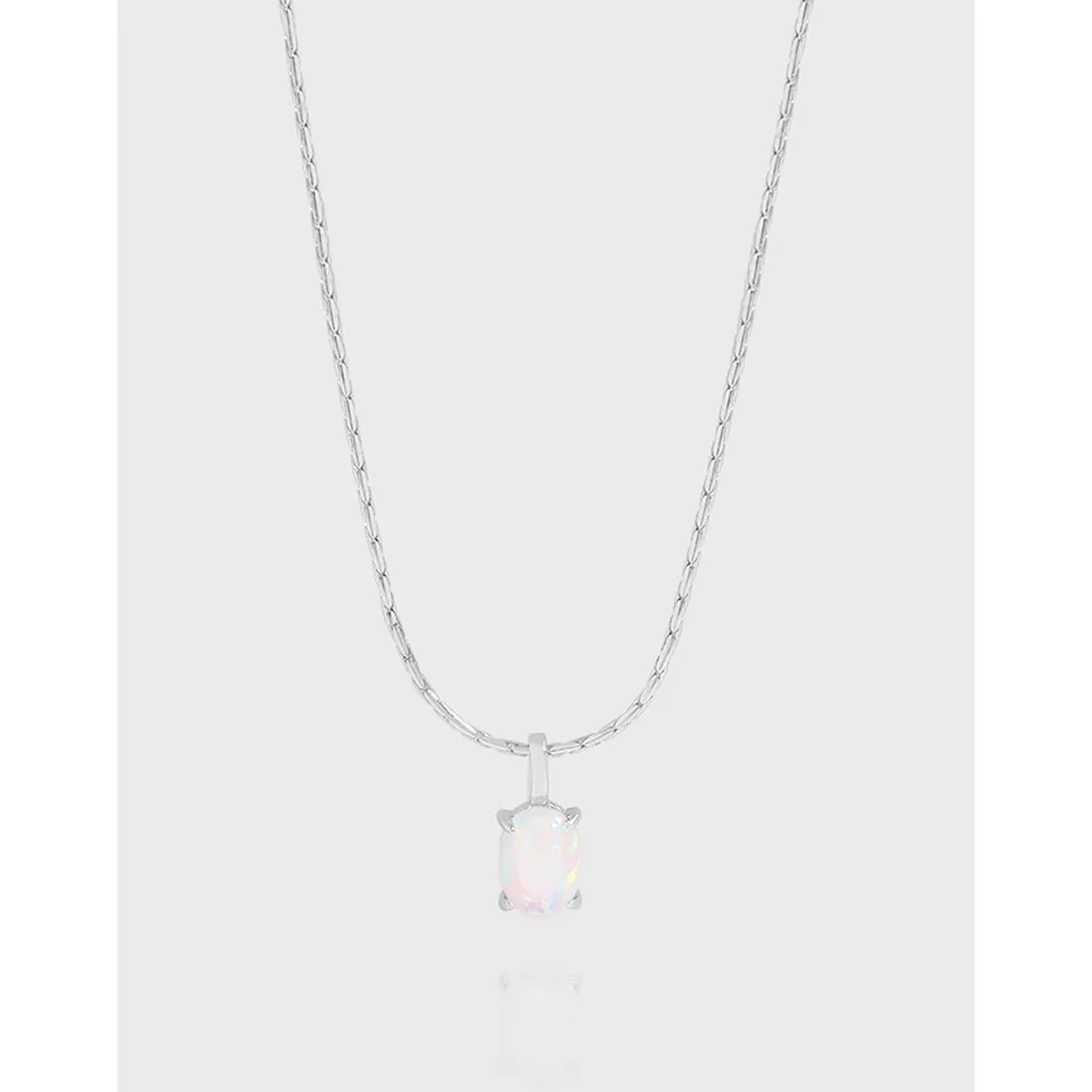 • Color: The necklace features a brilliant silver-tone chain and a secure four-prong setting, beautifully accentuating the main oval-cut opal. The gemstone itself presents an ethereal, iridescent white hue with delicate flashes of pink, blue, and yellow, embodying the celestial colors Malisse celebrates.