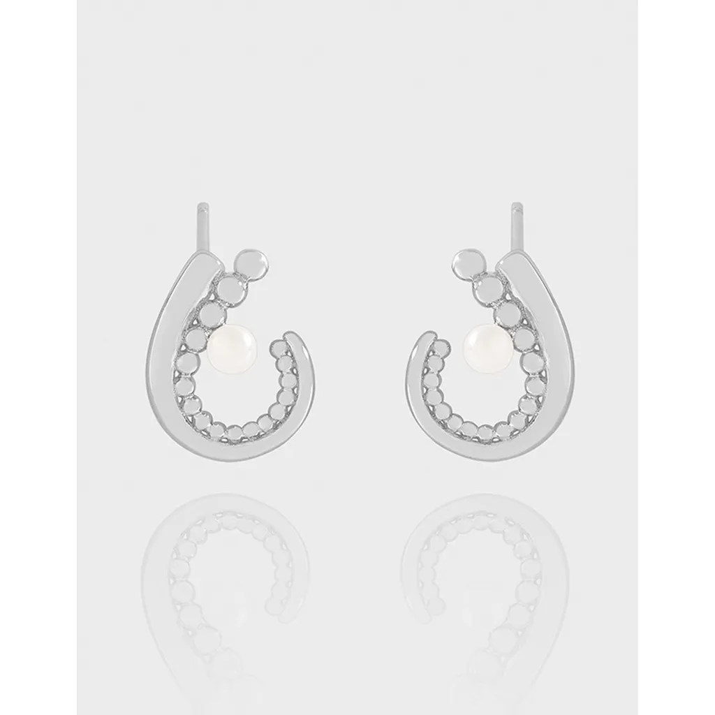 Color: Crafted from lustrous, cool-toned silver, these earrings beautifully frame a delicate, radiant white pearl. The combination creates a celestial hue, reminiscent of moonlight.