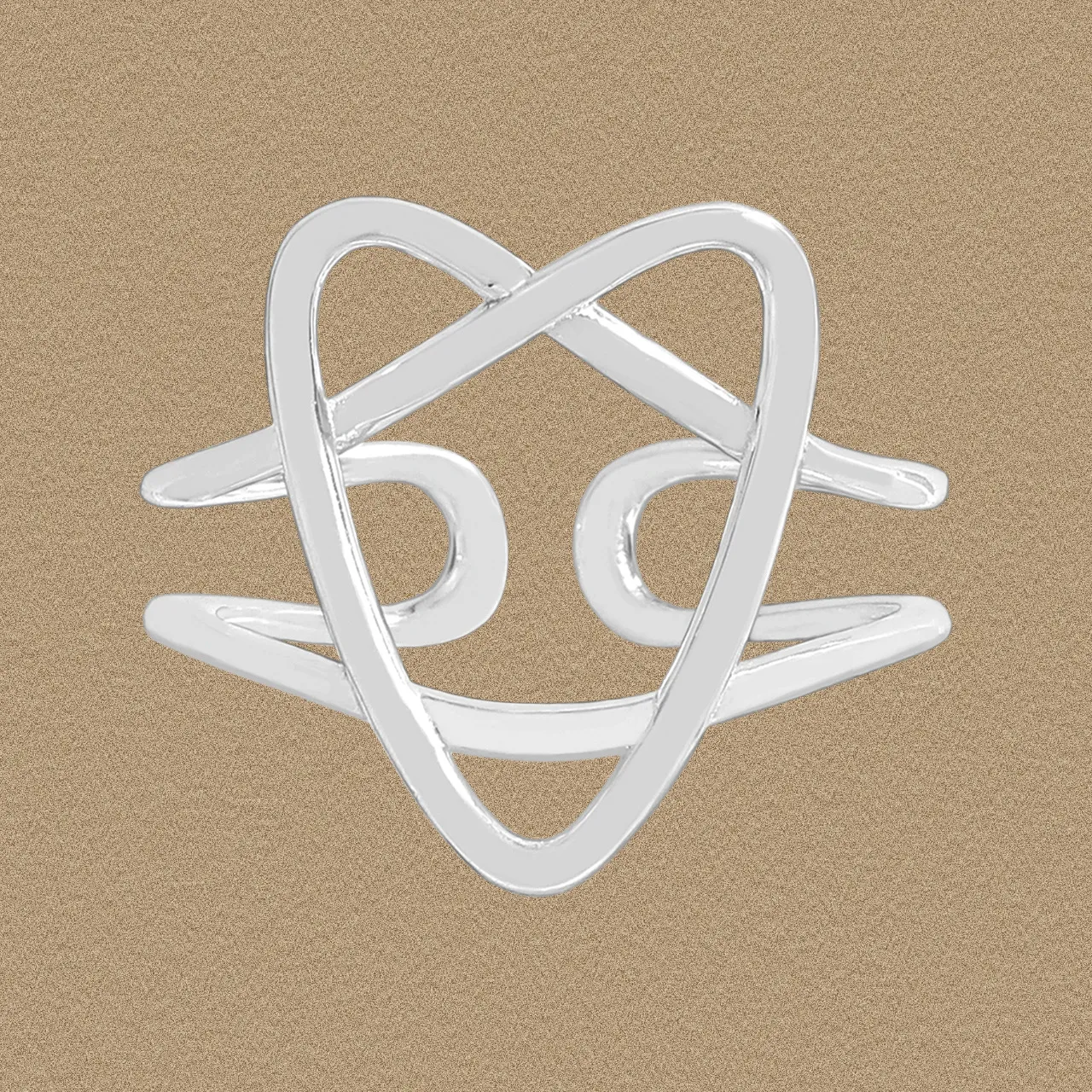 This exquisite Malisse ring shines with a brilliant, polished silver hue, embodying both elegance and modern abstraction. Its unique style features gracefully intertwining bands that form an open, fluid design, evoking a sense of continuous movement and sophisticated simplicity. The overall pattern suggests an abstract heart or a complex, organic knot, creating a captivating visual flow.