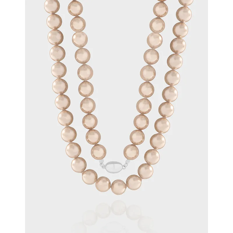 Discover the enchanting allure of the Malisse Double-Strand Champagne Pearl Necklace, a piece that beautifully encapsulates nature’s magic and the ethereal glow of the cosmos. Inspired by the celestial dance of the aurora borealis, this necklace transforms every moment into an ode to natural artistry.