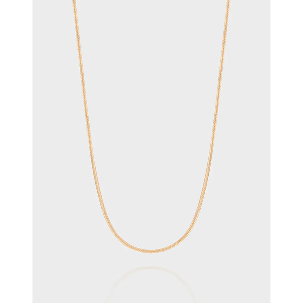 - Style: This Yithara Necklace features a sleek and modern snake chain design, offering a versatile and minimalist statement. Its graceful, fluid drape makes it perfect for standalone wear or for layering with other cherished pieces, embodying organic sophistication.