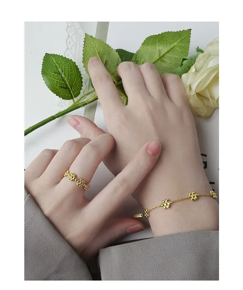 - Color: Adorned in a captivating golden hue, this bracelet radiates warmth and timeless elegance, reminiscent of sun-kissed petals and celestial light.