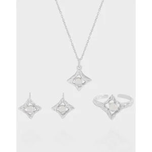 Organic Silver Star Ring with Moonstone Glow