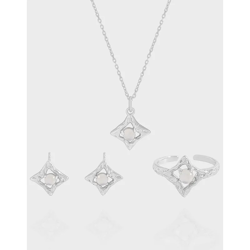 Color: The Yvalethra Ring gleams with a radiant silver finish, beautifully complemented by a central stone displaying a soft, milky white hue and a subtle opalescent glow, reminiscent of moonlight.